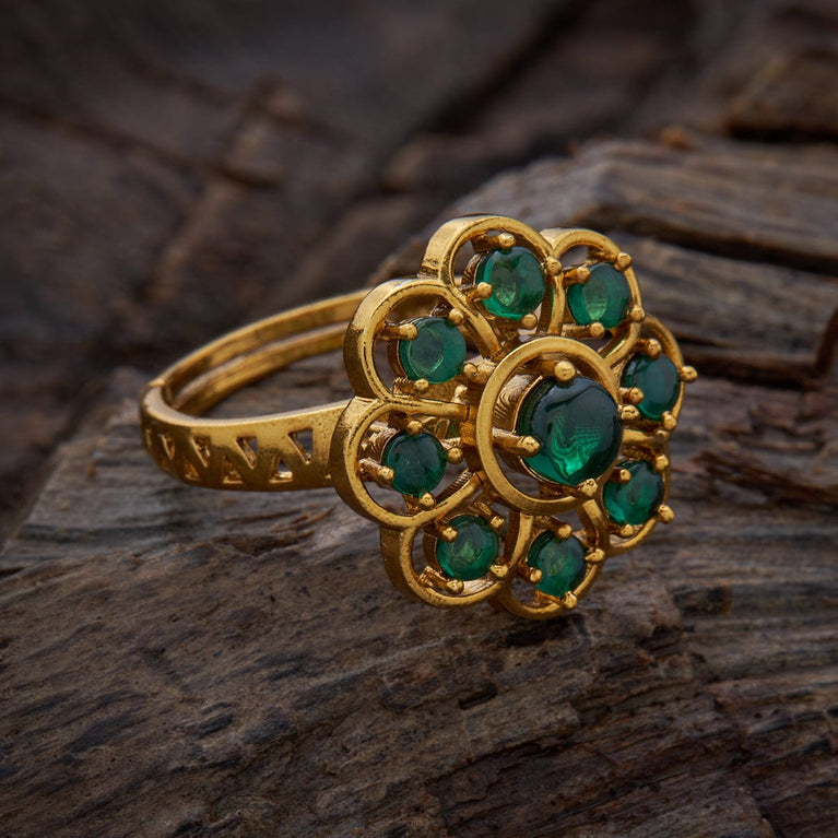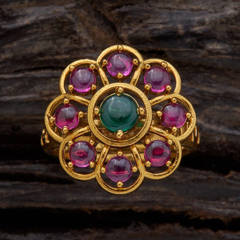 Antique Finger Ring Embellished with stonesRedefine elegance as you adorn this sizzling bridal ring from our collection. This ring has a copper alloy base that makes it too comfortable to wear and flaunt. The stonework on the floral design is like a crowning stroke for this ring. So, what’s stopping you from adding this piece of elegance to your bridal attire?