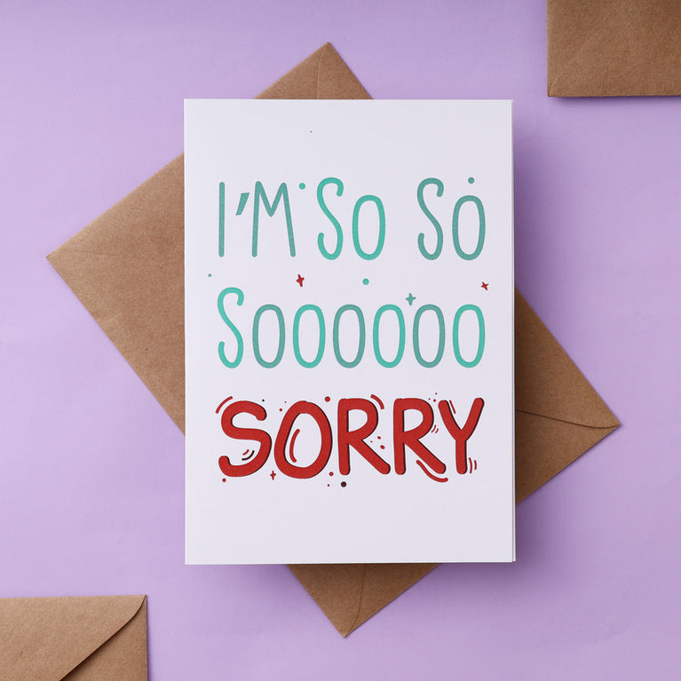 Messed up really bad? One sorry won’t do justice?? Here’s a string of them!! This cute card screams guilt in the most lovable way. A perfect gift when you’re feeling a tiny bit over-apologetic. Trust us, they’ll smile before they finish reading it.Specifications:Size of the Card - 12.5 x 17.7 cmsContent on the Card - I'm So So Soooo Sorry