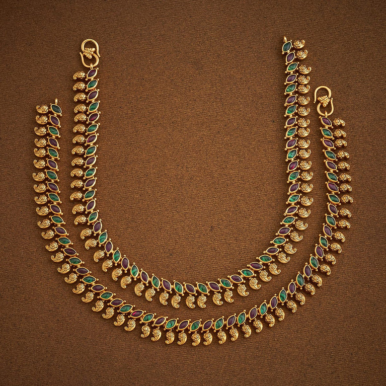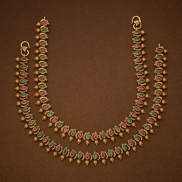 Kushal's Fashion Jewellery Antique TikkaA magnificent Tikka can make your outfit go from bland to eye-catching, which is why we present our latest antique Tikka. The best part of this Tikka is the gold polish that compliments the shine of the ruby, green, and ruby-green stones used in it. Wear it with your favourite outfit.