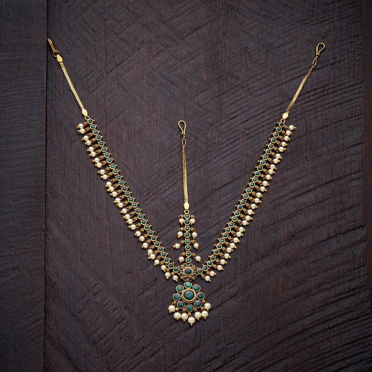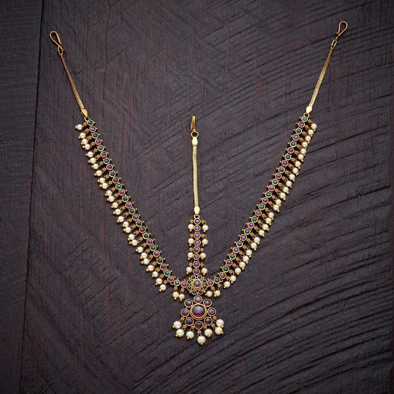 Kushal's Fashion Jewellery Festive Wear Antique TikkaIf you are in love with antique tikkas, then this is the right thing for you. This gorgeous antique tikka will transport you to the realm of luxury. This item's rich workmanship and careful construction give it a sense of classic charm. It goes well with ethnic clothing, letting you stand out in the crowd, and is perfect for festive occasions.