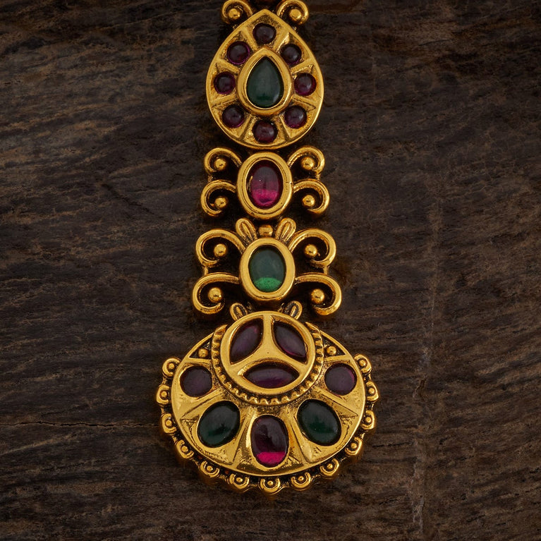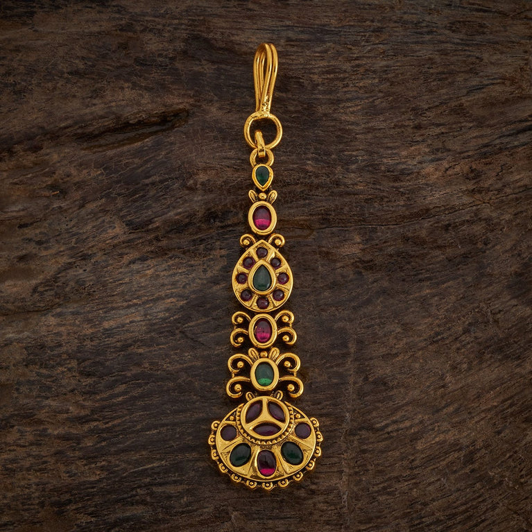 Kushal's Fashion Jewellery Flower Motif Antique TikkaIdeal for those who appreciate the charm and elegance of a decent look! Crafted with precision, our antique tikka boasts a queenly allure that never fails to wow. It's encrusted with brilliantly gleaming synthetic ruby and green-coloured stones, which adds an irresistible sparkle to your regal charm. Known for its decent appearance, it blends the traditional aesthetic with a contemporary sensibility.