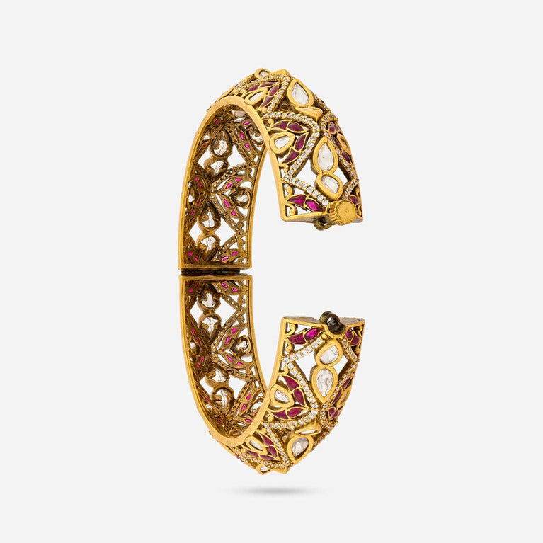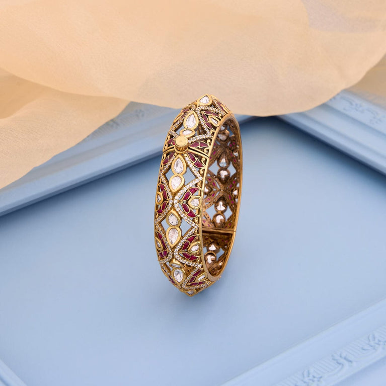 Kushal's Fashion Jewellery Paisley Design Kundan EarringAll types of polishes look splendid on Kundan stones, but Victorian polish gives it the finest look and our latest pair of Kundan earrings are here to give you that look. The Victorian polish on the Kundan stones paired with the green and ruby stones makes these hanging earrings one of the best accessories you can get this wedding season.