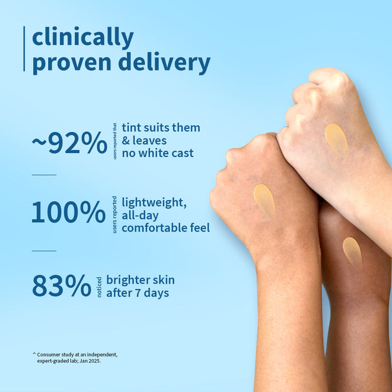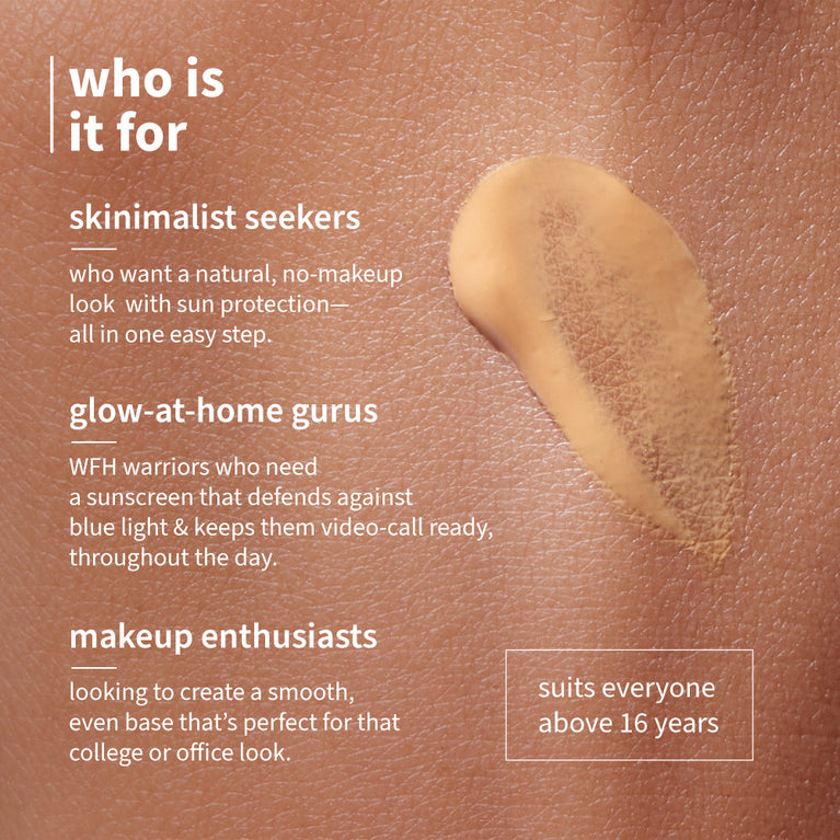 Benefits: *Tint that suits most Indian skin tones *Lightweight fluid texture *SPF 50 PA++++ broad spectrum sun protection *Helps brighten skin & fades blemishes *Hydrates, smoothens & softens skin *Helps strengthen the skin’s natural barrier