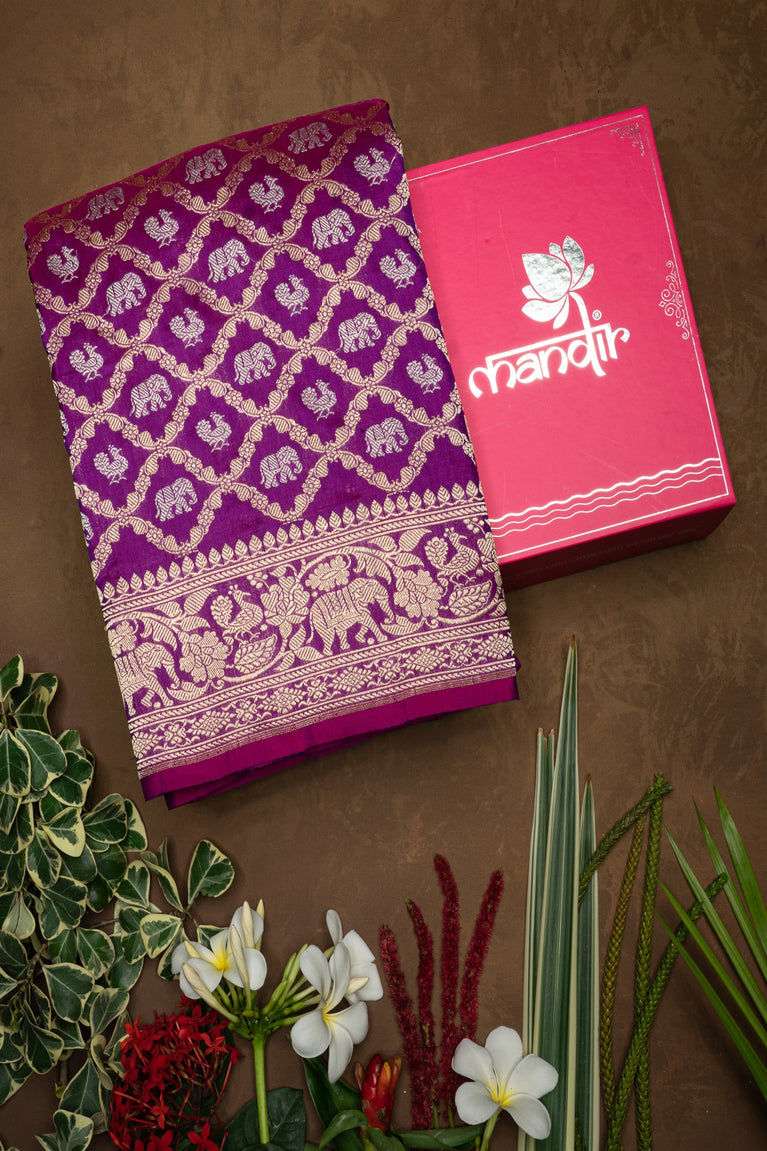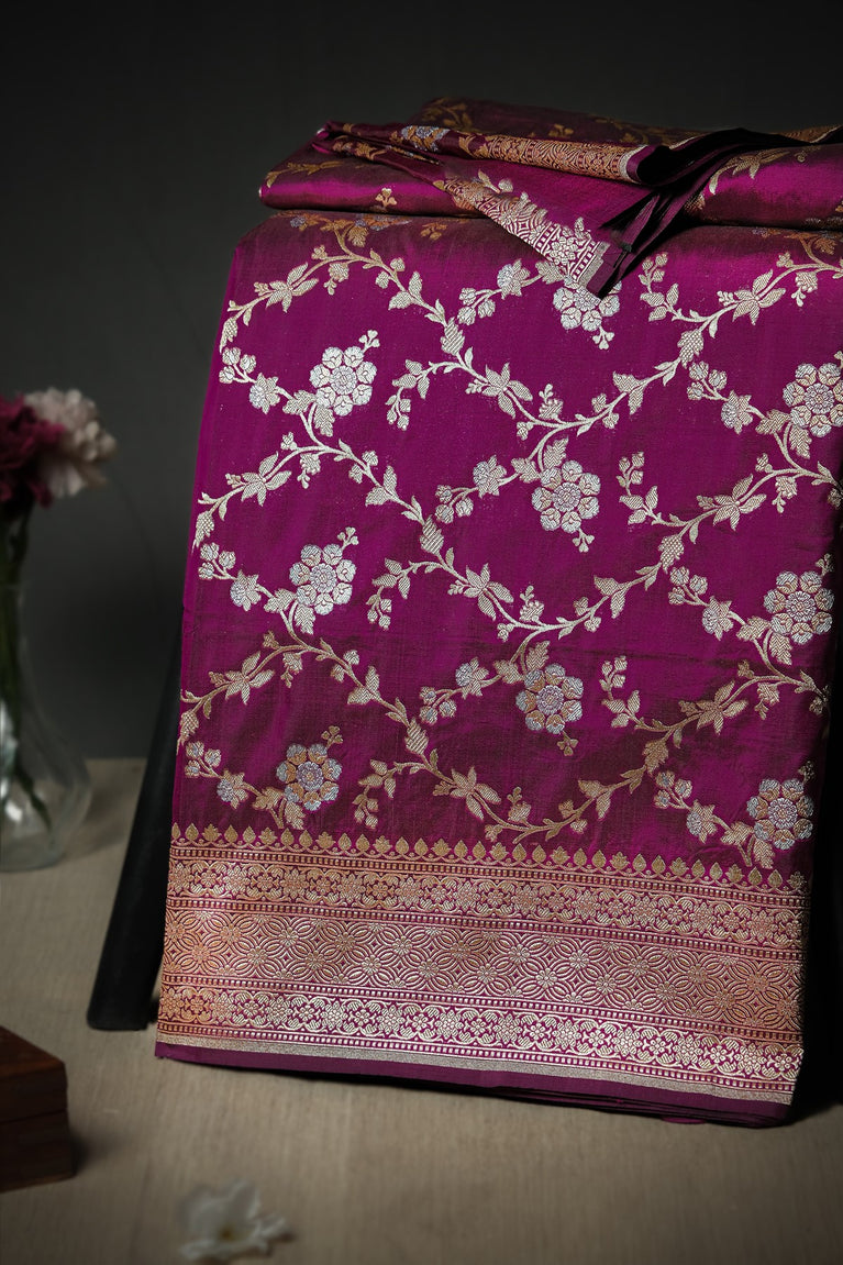 Mandir Magenta & Copper Banarasi Floral Jaal Saree
