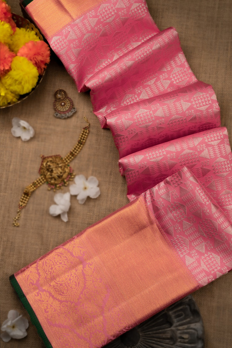 Mandir Light Pink & Green Kanchipuram Geometric Saree