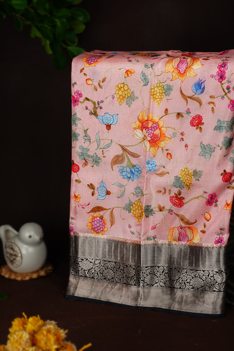 Mandir Light Pink & Grey Fancy Digital Print Saree