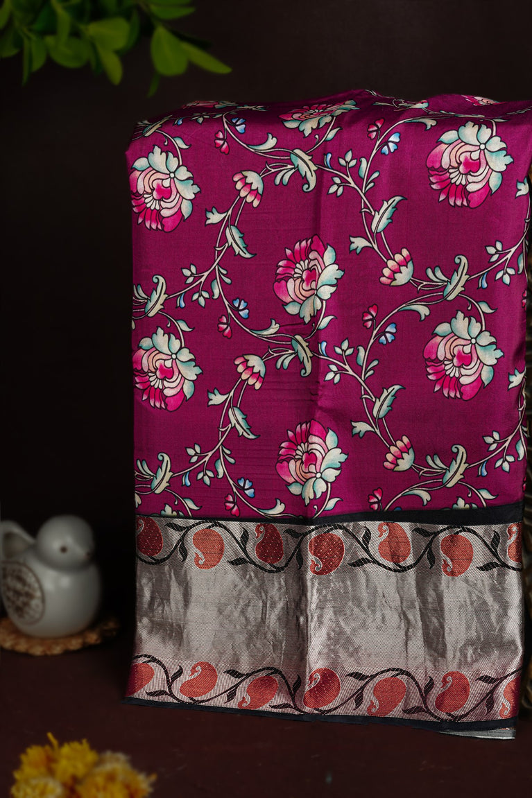 Mandir Magenta & Black Fancy Digital Print Saree