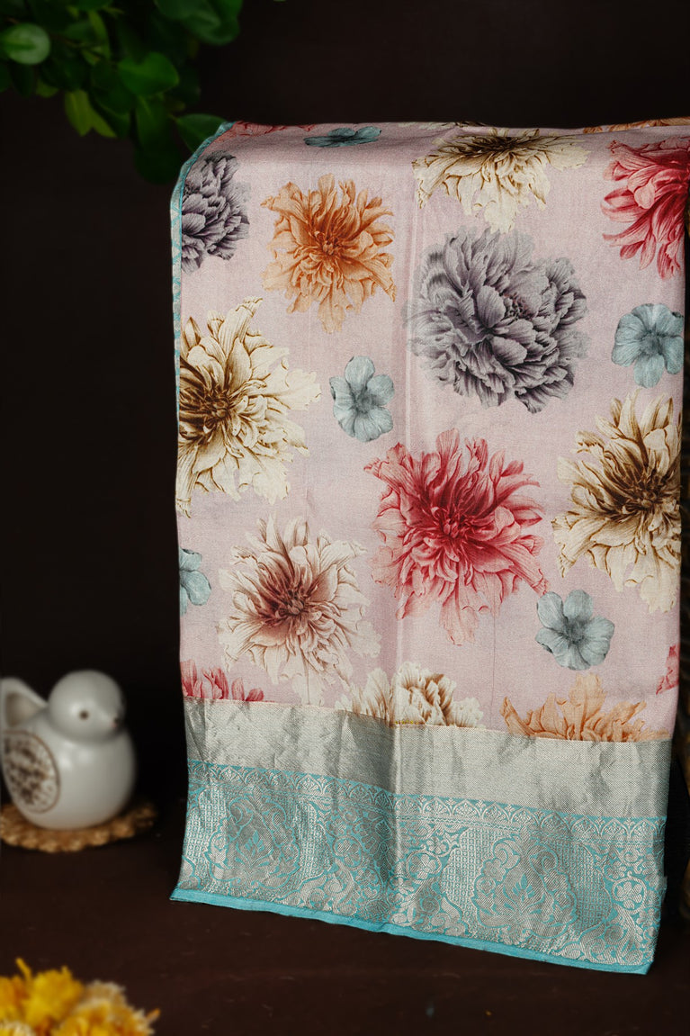 Mandir Light Pink & Sea Green Fancy Digital Print Saree