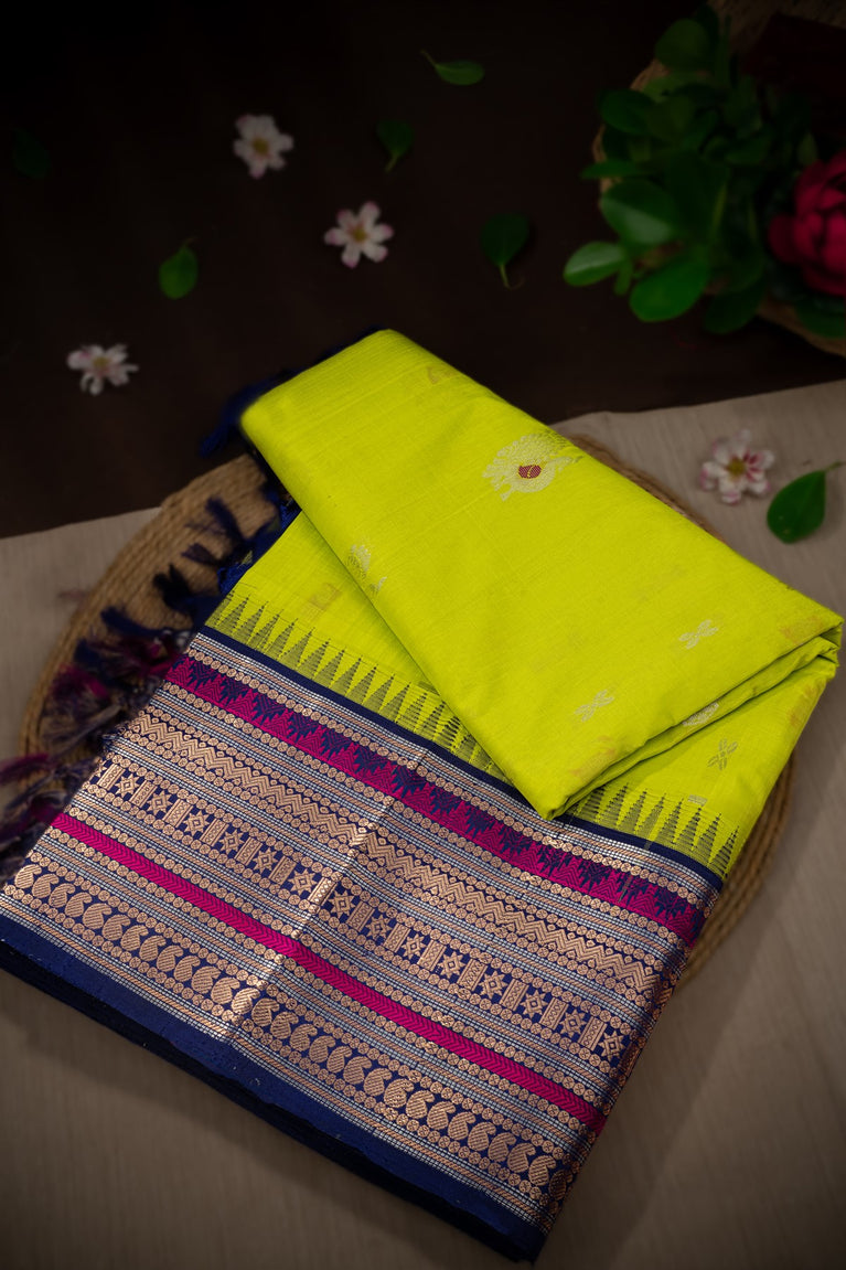 Mandir Lime Green & Navy Blue Kuppadam Motifs Saree