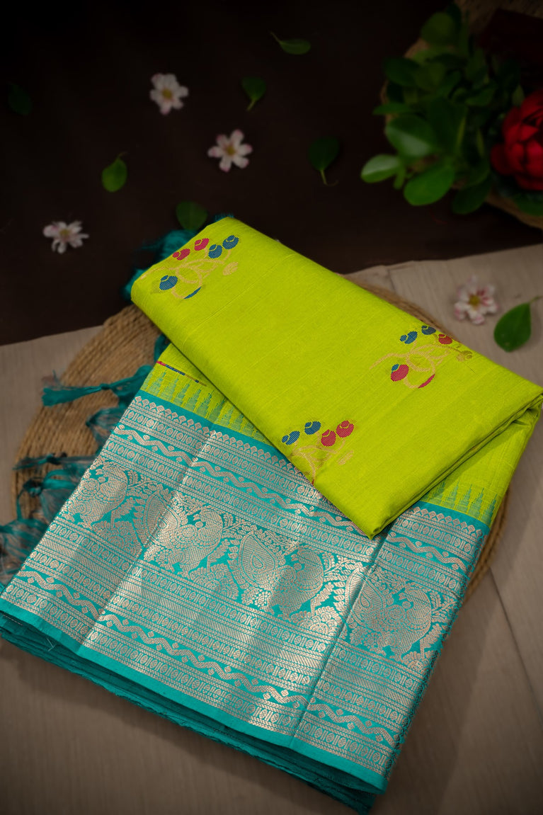 Mandir Lime Green & Teal Kuppadam Motifs Saree