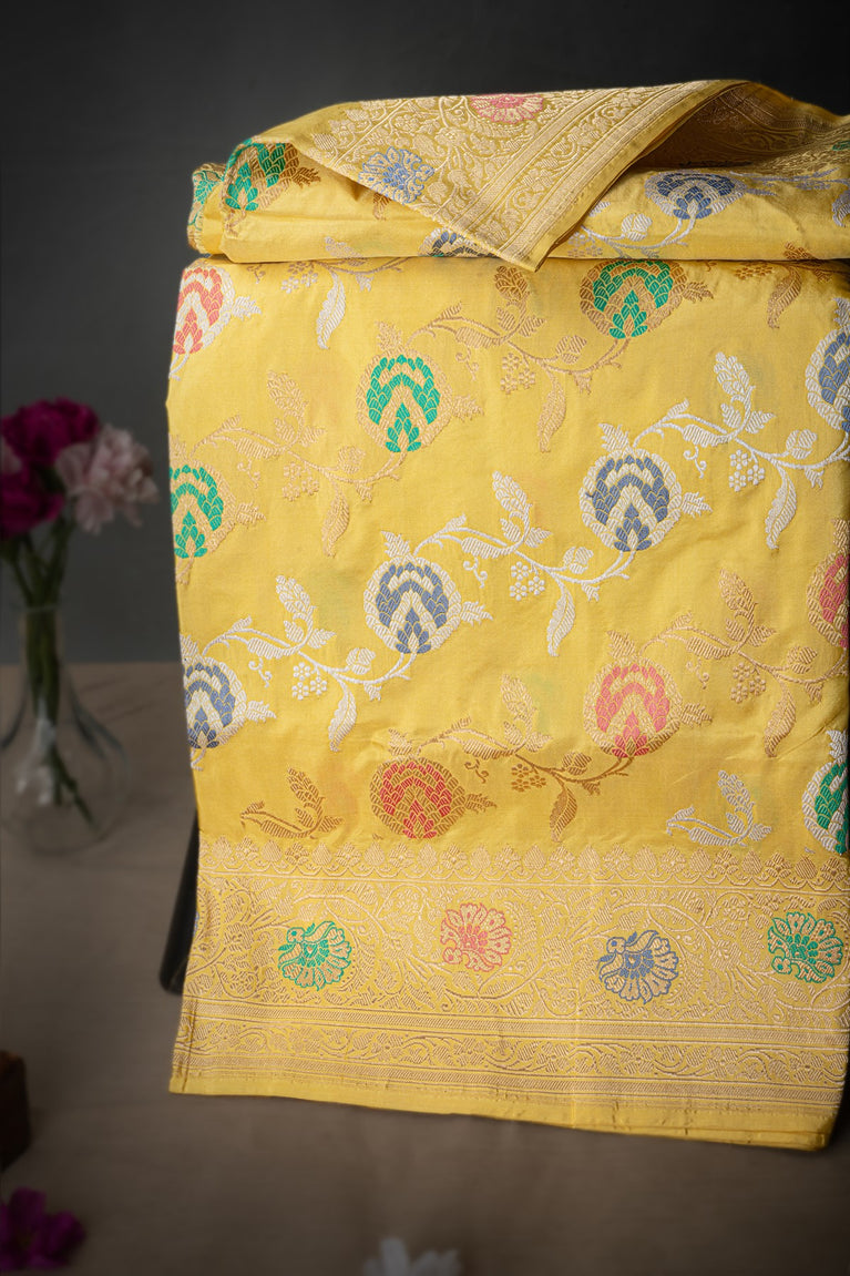Mandir Lime Yellow & Gold Banarasi Jaal Saree