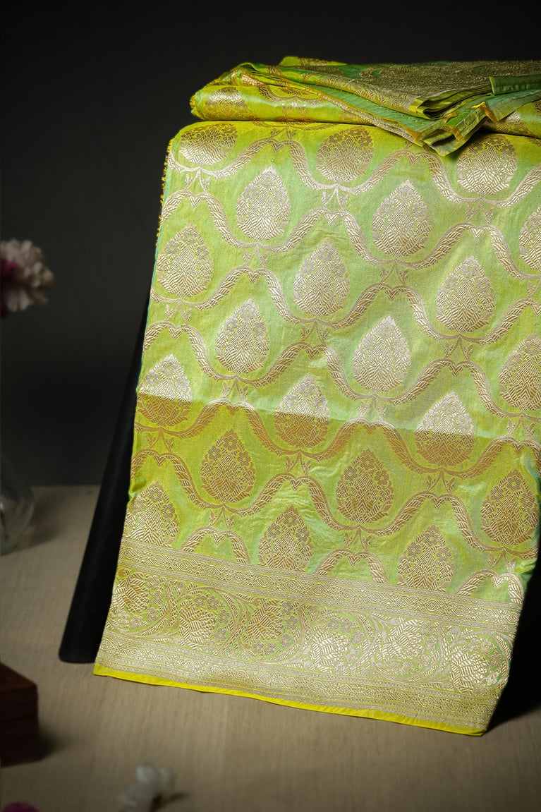 Mandir Lime Green & Gold Banarasi Jaal Saree