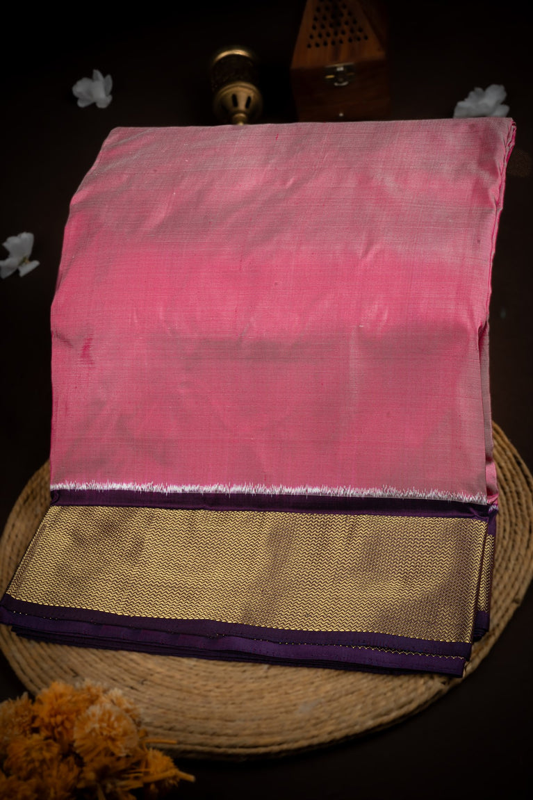 Mandir Light Pink & Navy Blue Kanchi Ikat Plain Saree