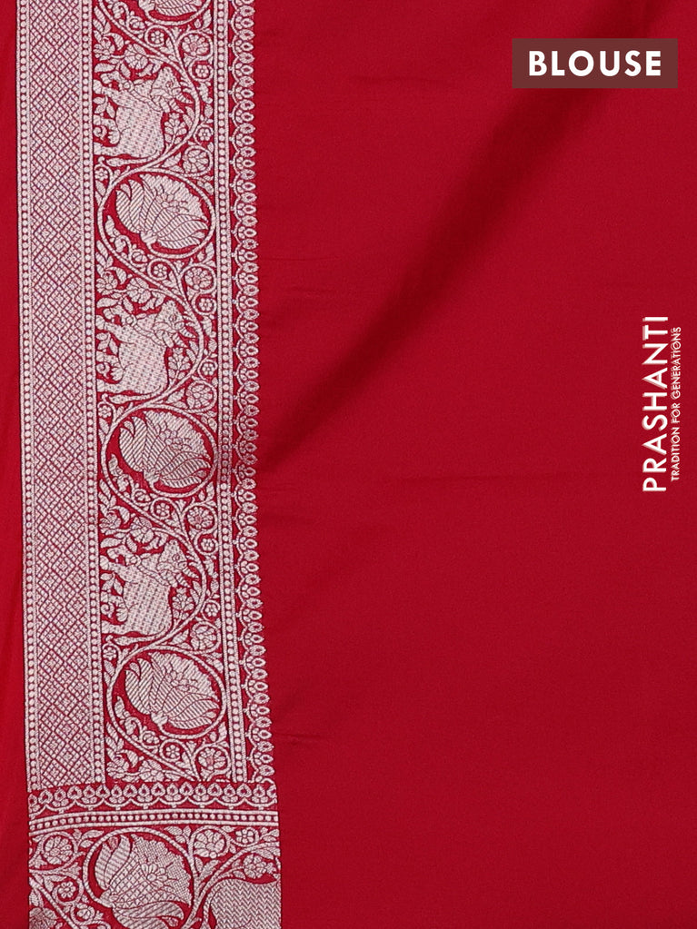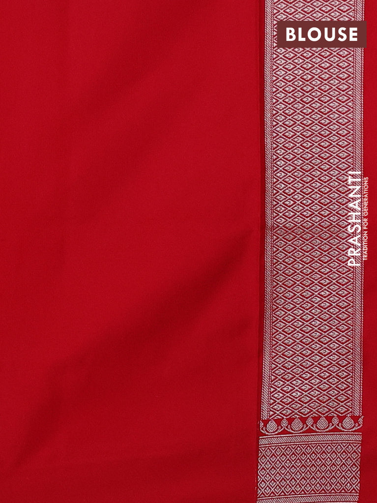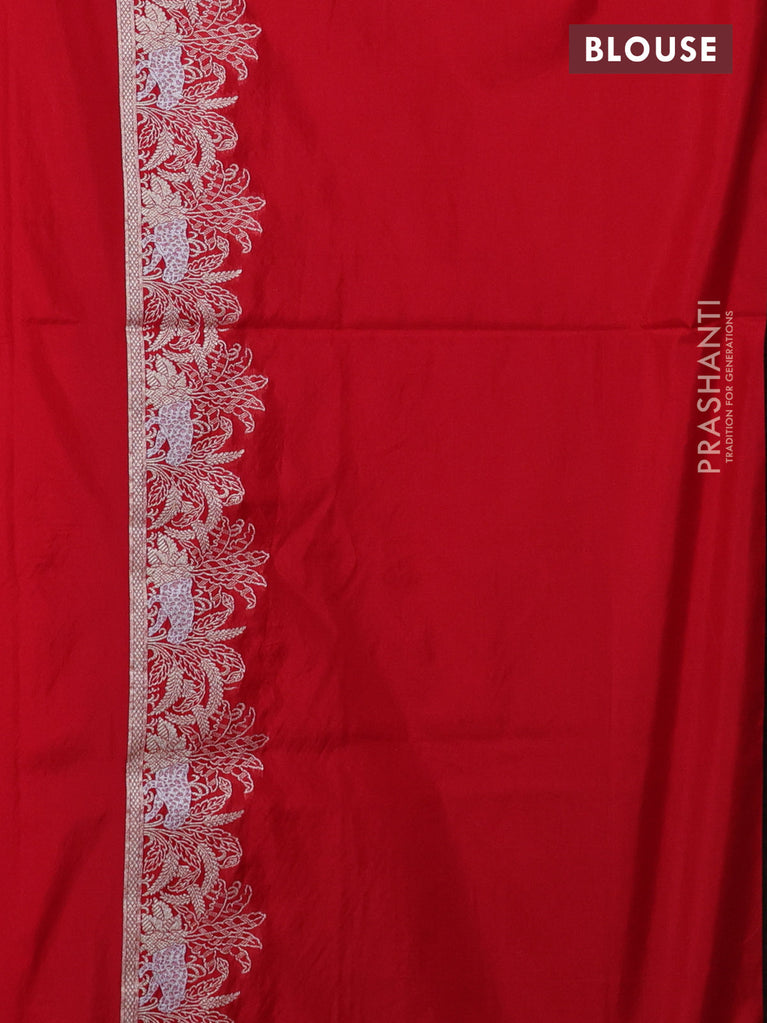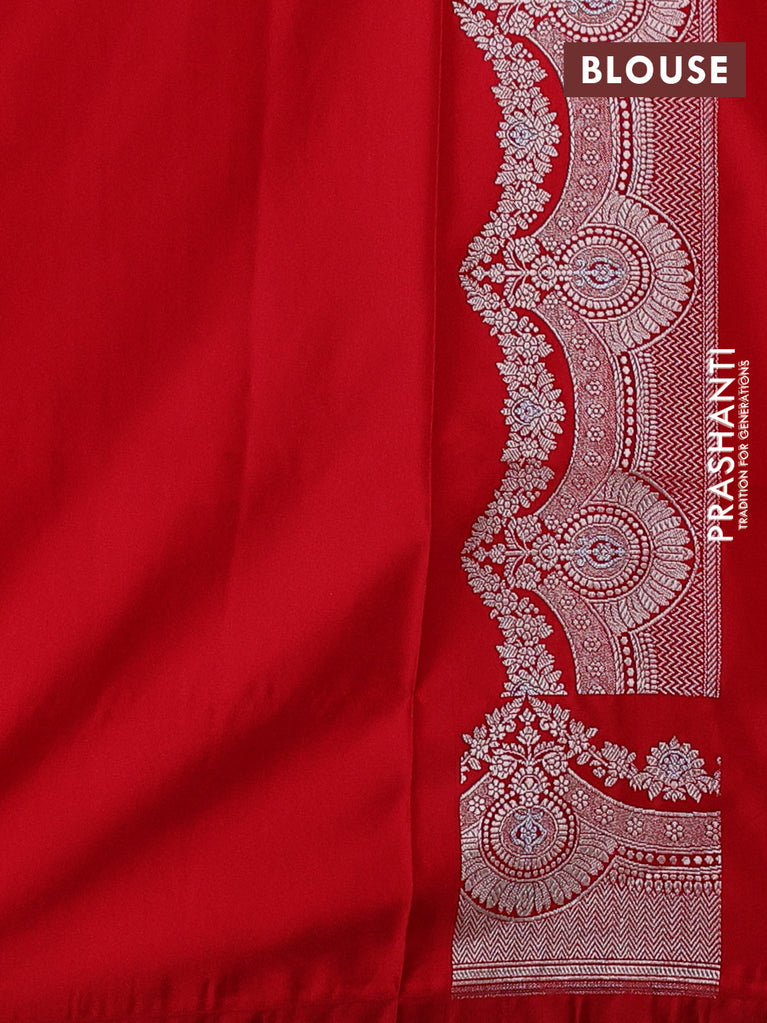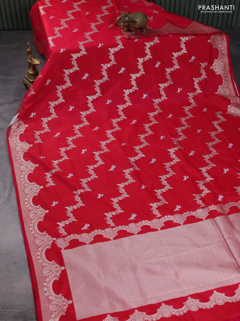 Banarasi semi katan saree red with silver & gold zari woven buttas and rich zari woven border