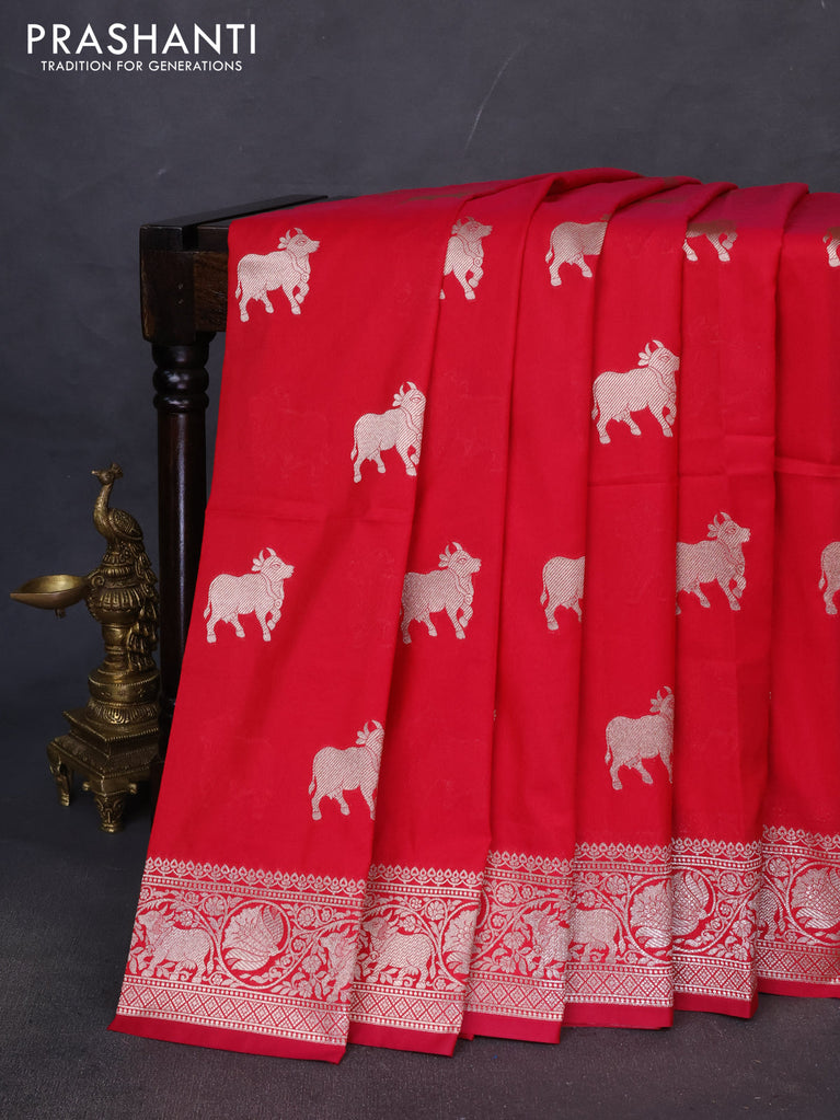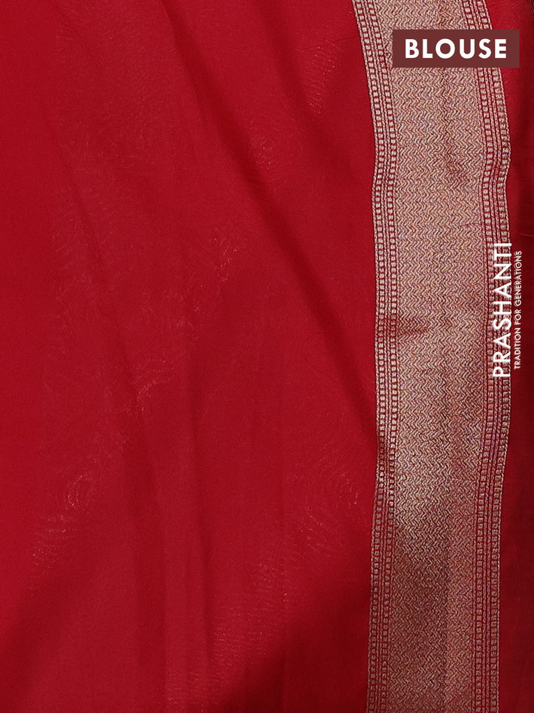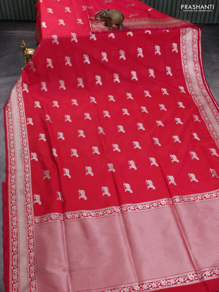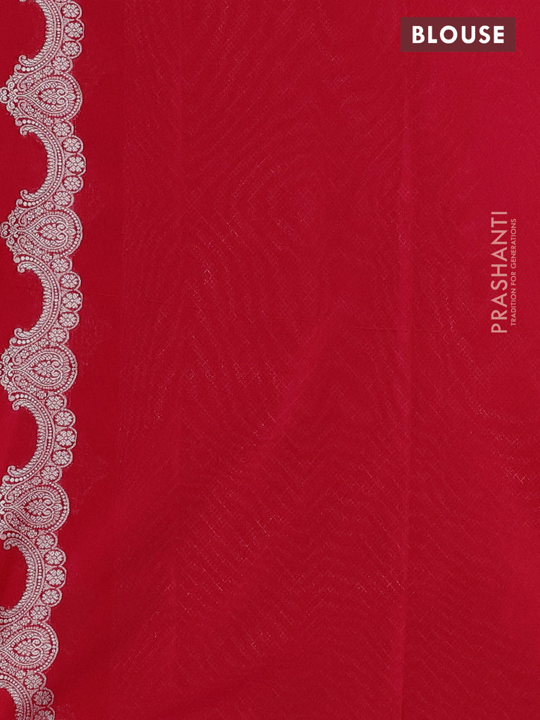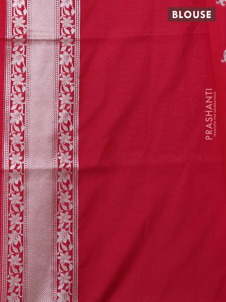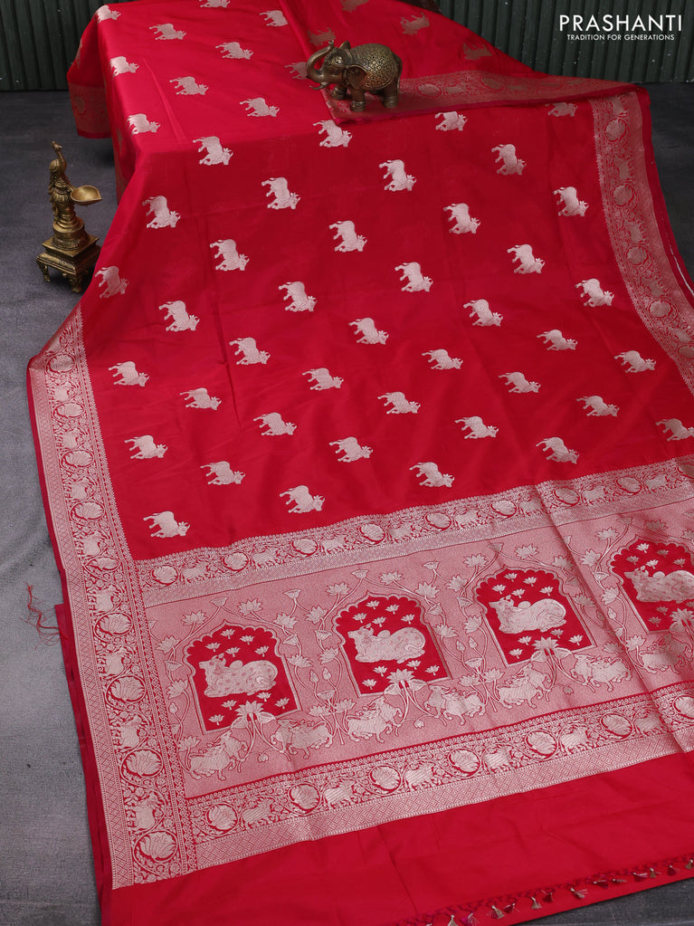 Banarasi semi katan saree red with silver & gold zari woven buttas and rich zari woven border