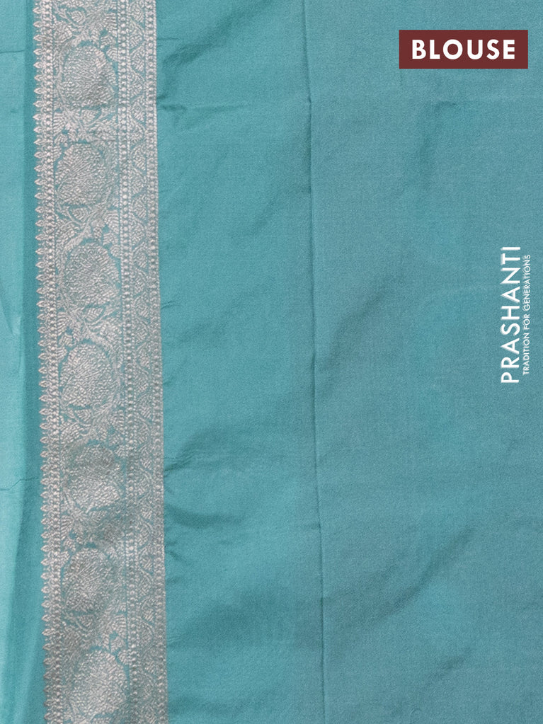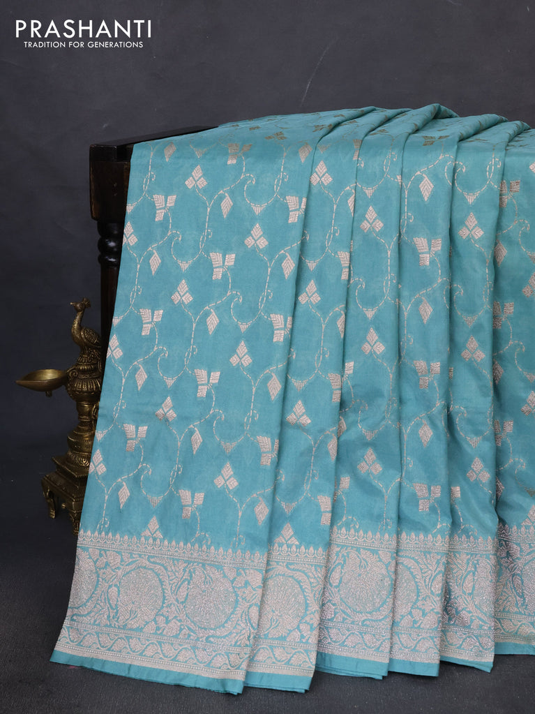 Banarasi semi katan saree teal blue with zari woven buttas and zari woven border