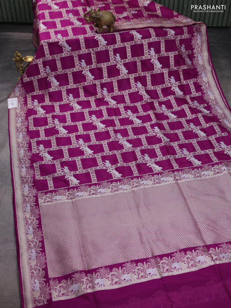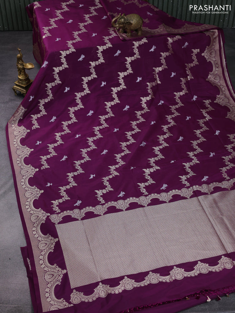 Banarasi semi katan saree purple with silver & gold zari weaves and zari woven border