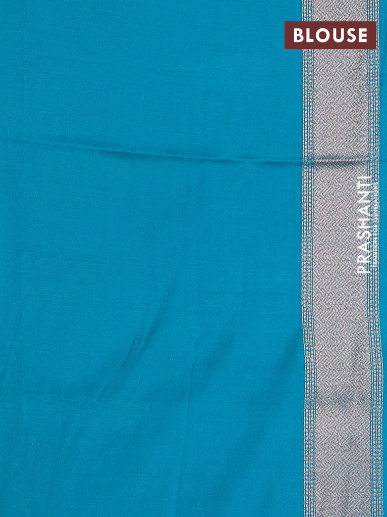 Banarasi semi katan saree teal blue with allover zari weaves and zari woven border