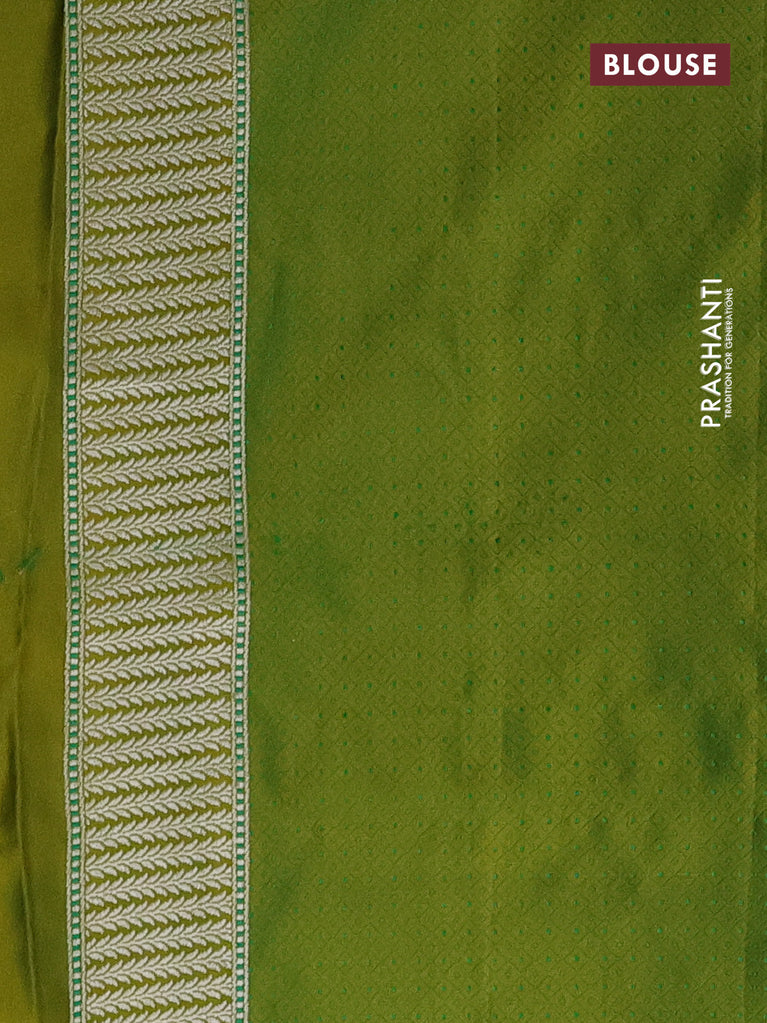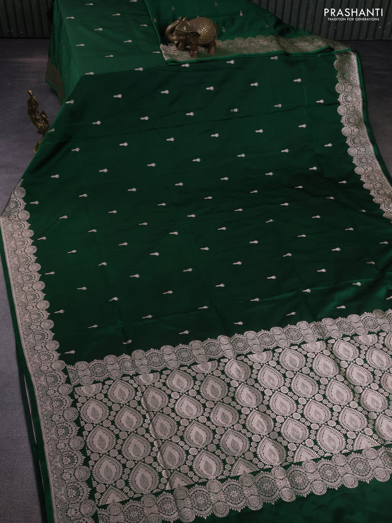 Banarasi semi mushru silk saree green with zari woven buttas and zari woven border