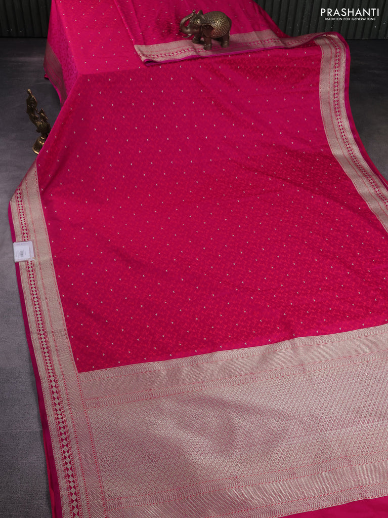 Banarasi semi mushru silk saree pink with allover self emboss & zari buttas and zari woven border