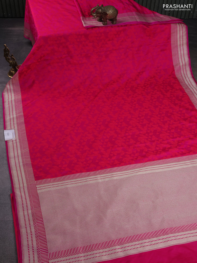 Banarasi semi mushru silk saree pink with allover zig zag zari weaves and zari woven border