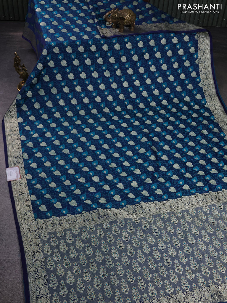 Banarasi semi mushru silk saree dual shade of blue with allover zig zag zari weaves and zari woven border