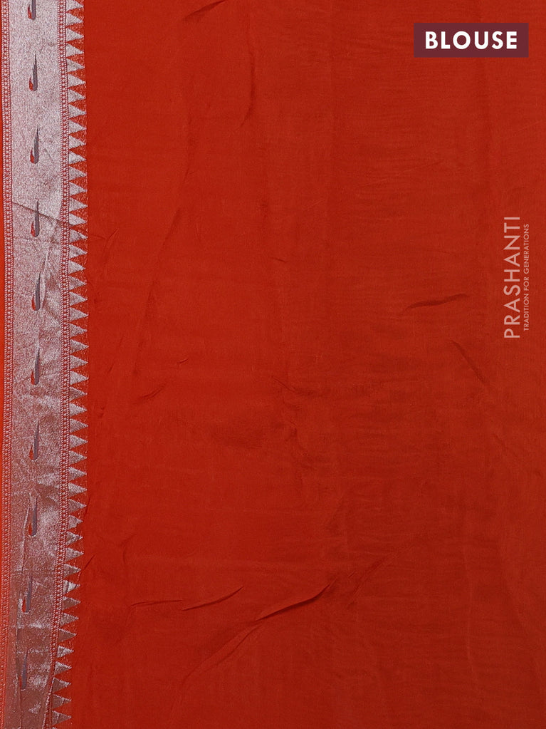 Banarasi semi raw silk saree orange with allover silver zari woven paithani weaves and silver zari woven border