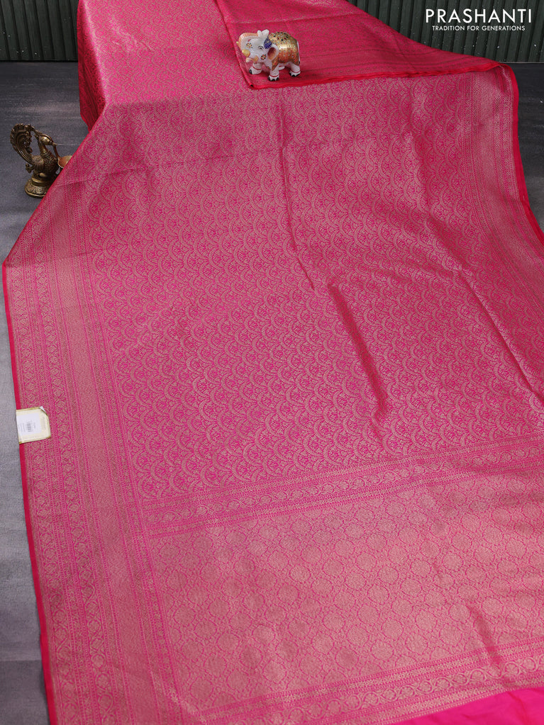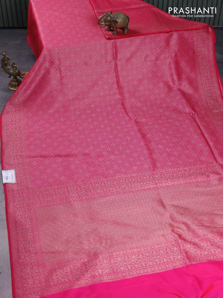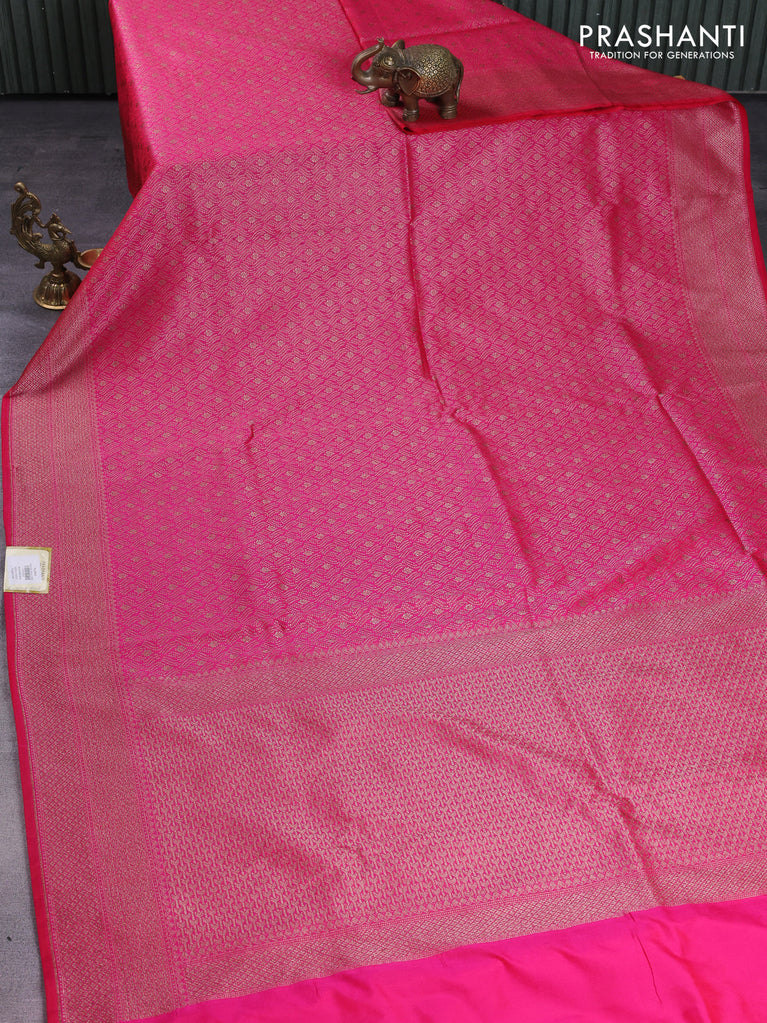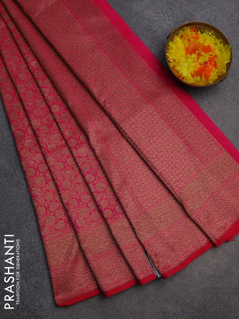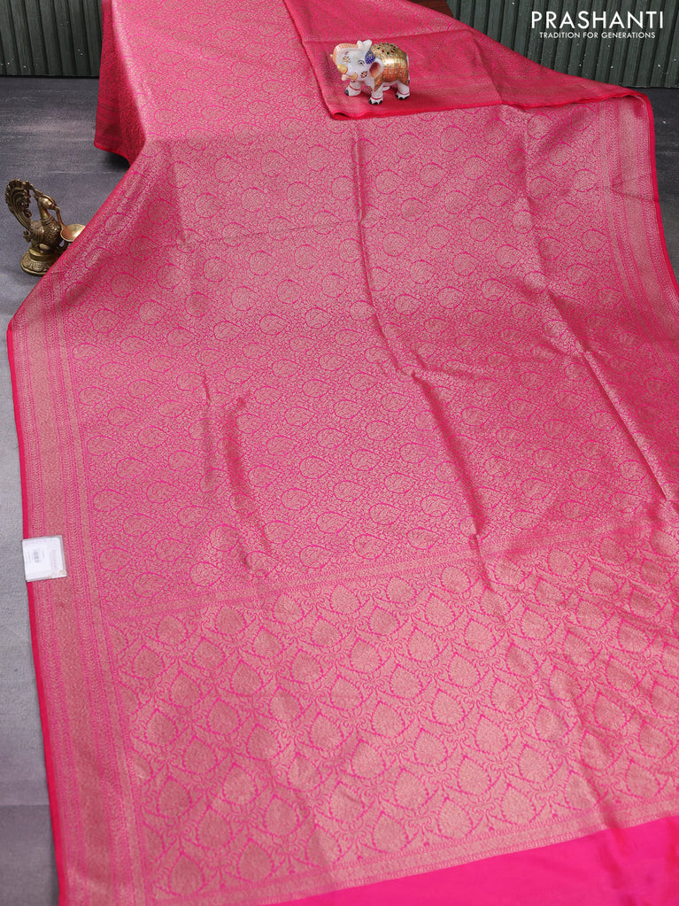 Banarasi semi silk saree pink with allover thread & zari weaves and woven border