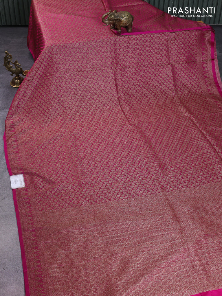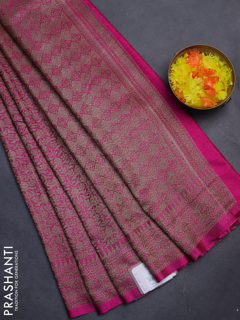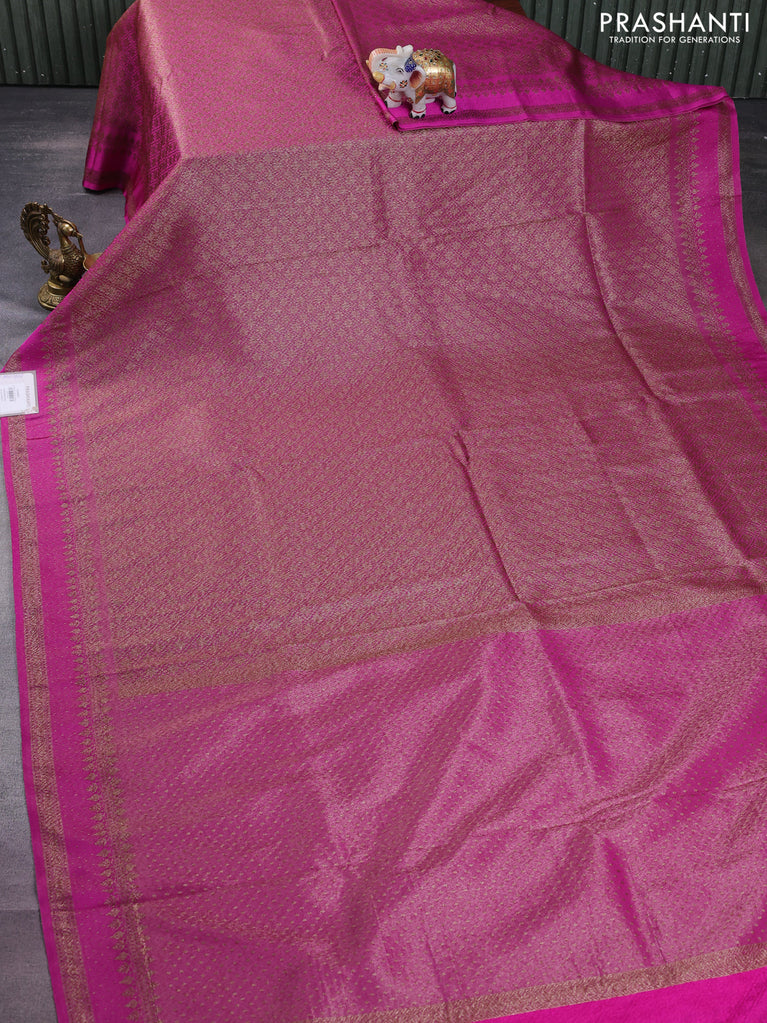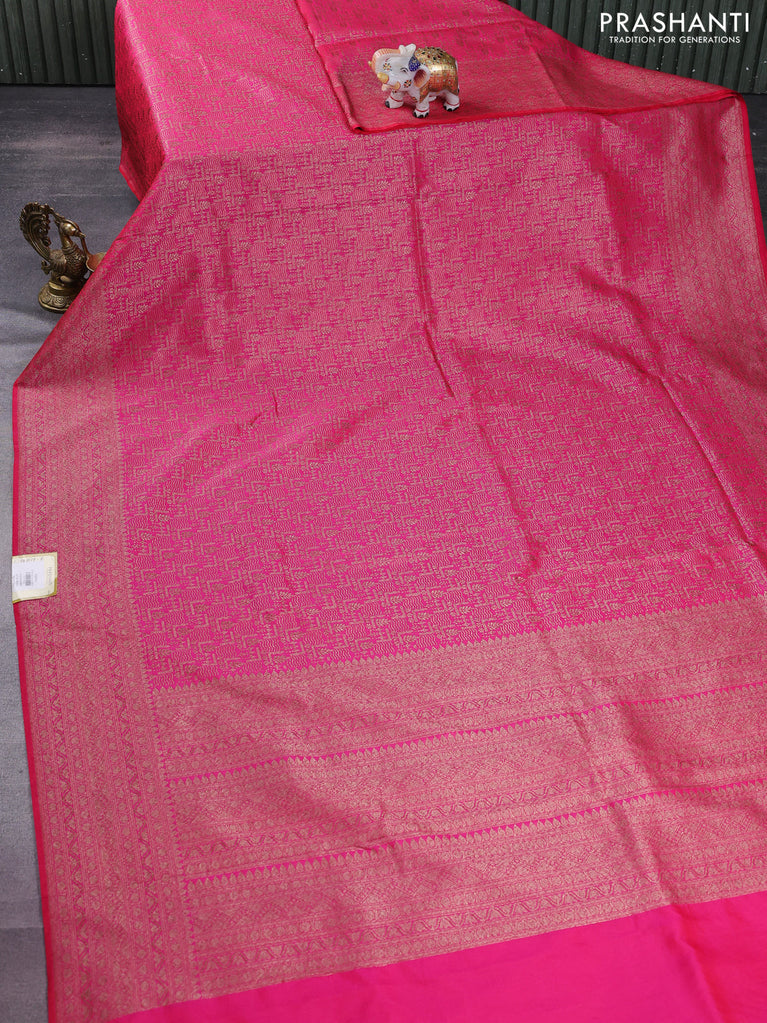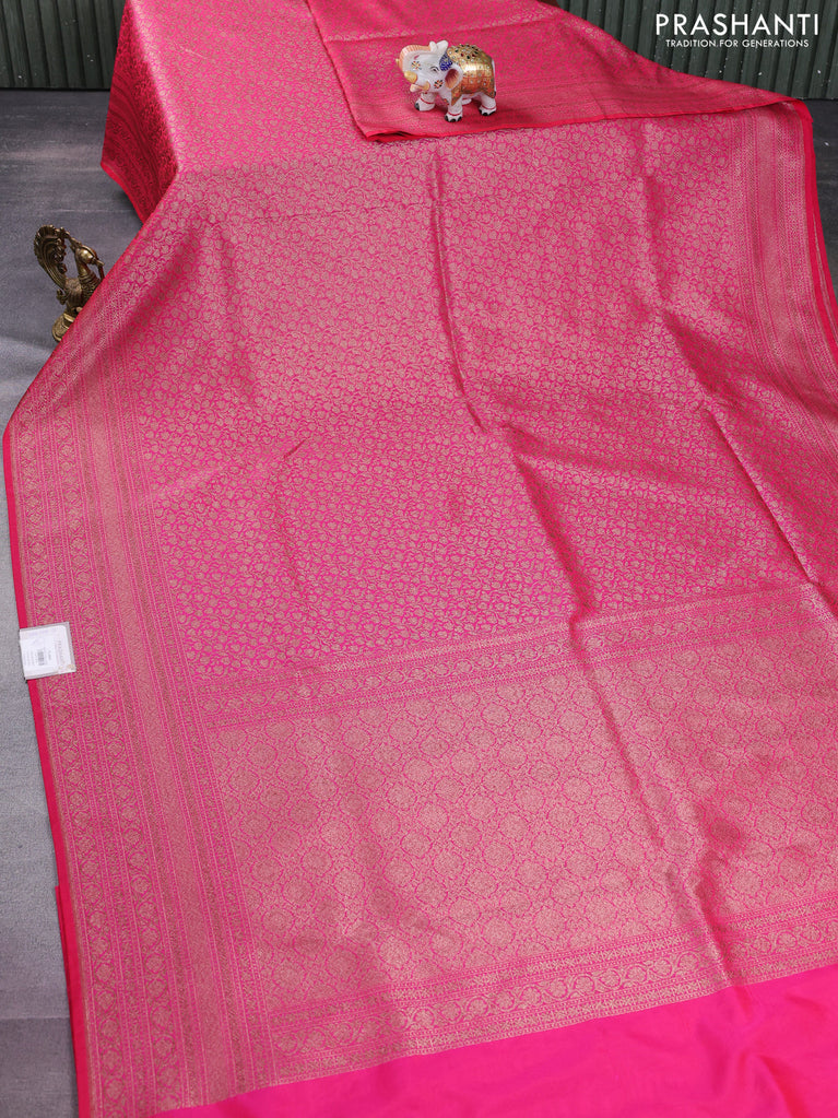 Banarasi semi silk saree pink with allover thread & zari weaves and woven border