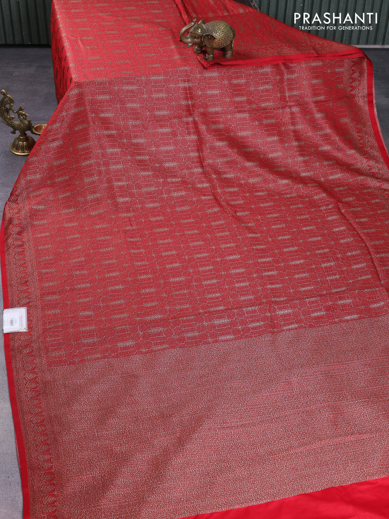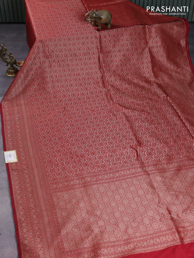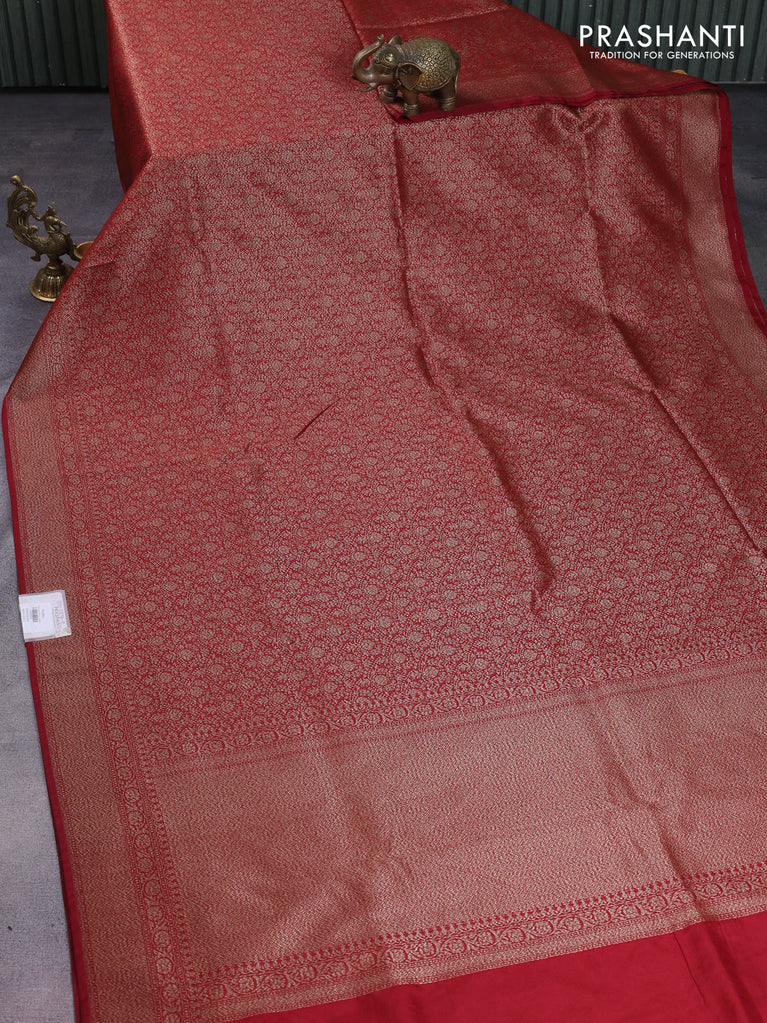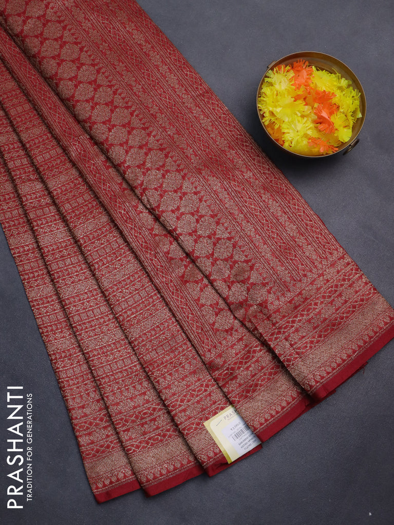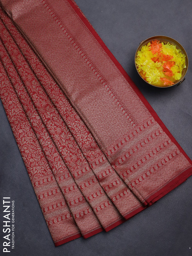 Banarasi semi silk saree maroon with allover thread & zari weaves and woven border
