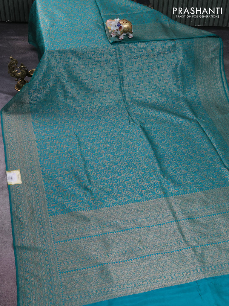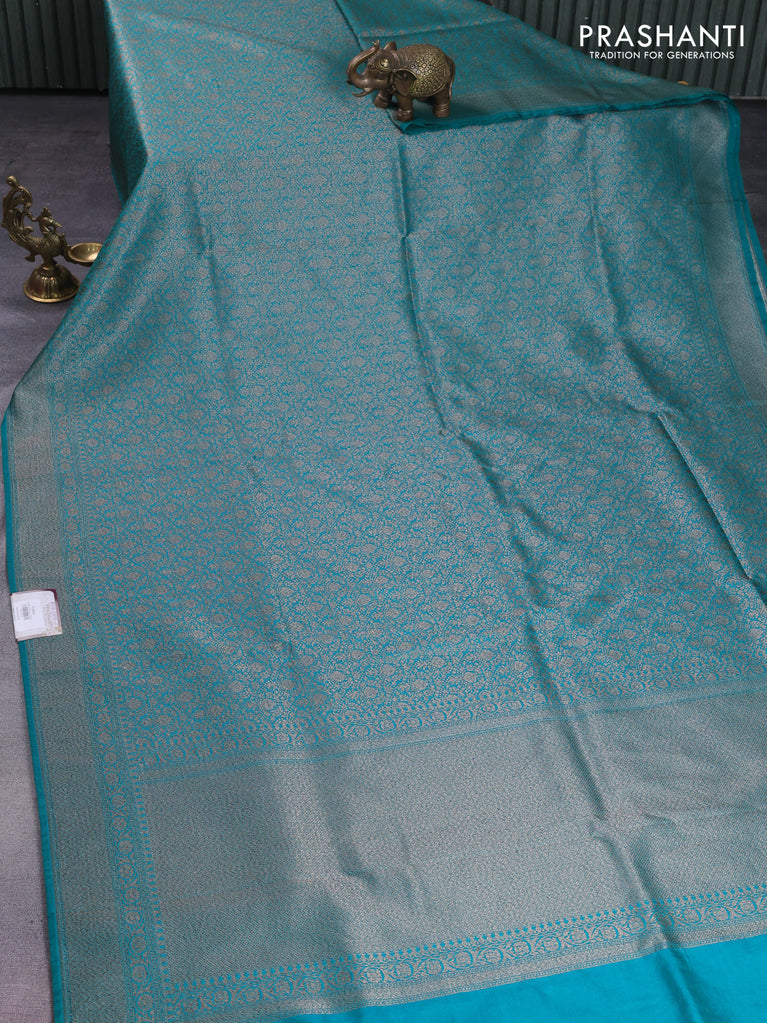 Banarasi semi silk saree teal blue with allover thread & zari weaves and woven border
