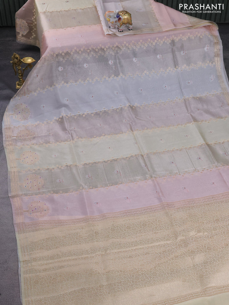 Banarasi tissue semi silk saree off white and cream with zari weaves & buttas and zari woven butta border