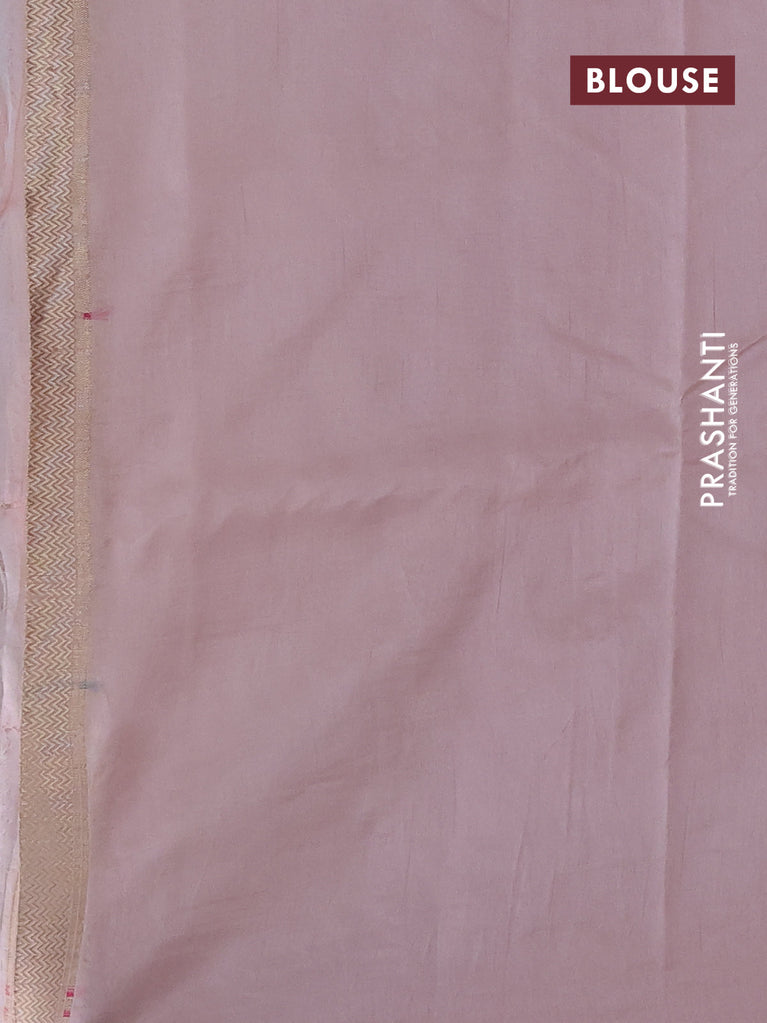 Banarasi tissue semi silk saree pastel pink with zari weaves & buttas and floral zari woven butta border