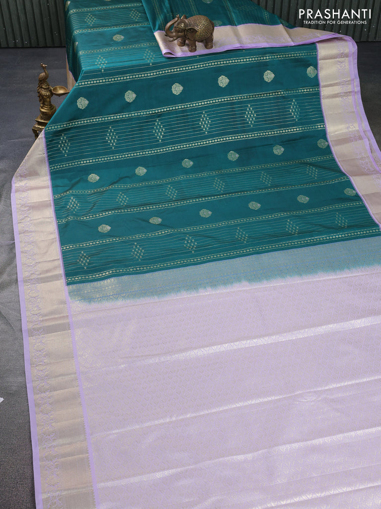 Bangalori silk saree teal blue and deep purple with zari woven buttas and zari woven border