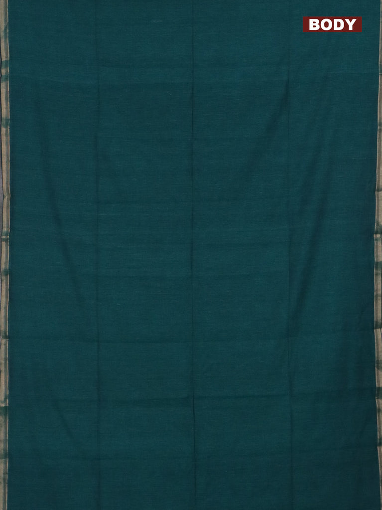 Bengal soft cotton saree peacock green with plain body and zari woven border
