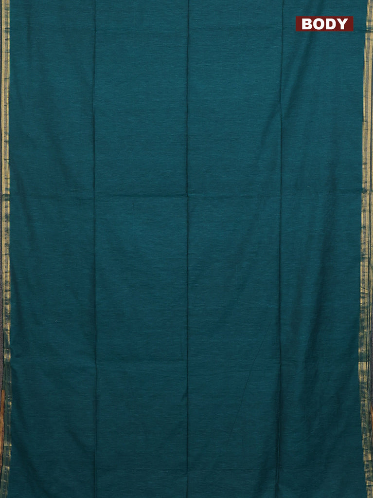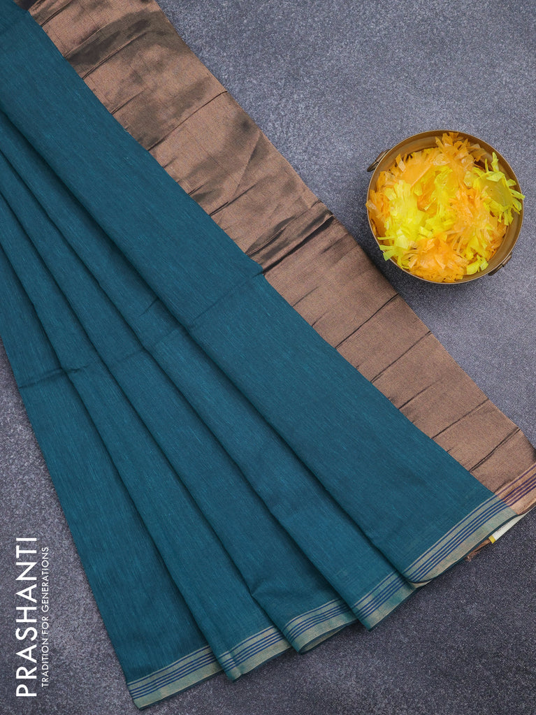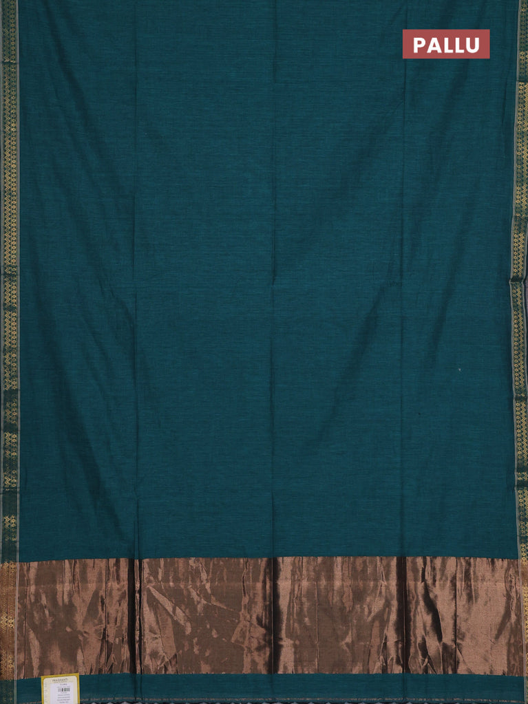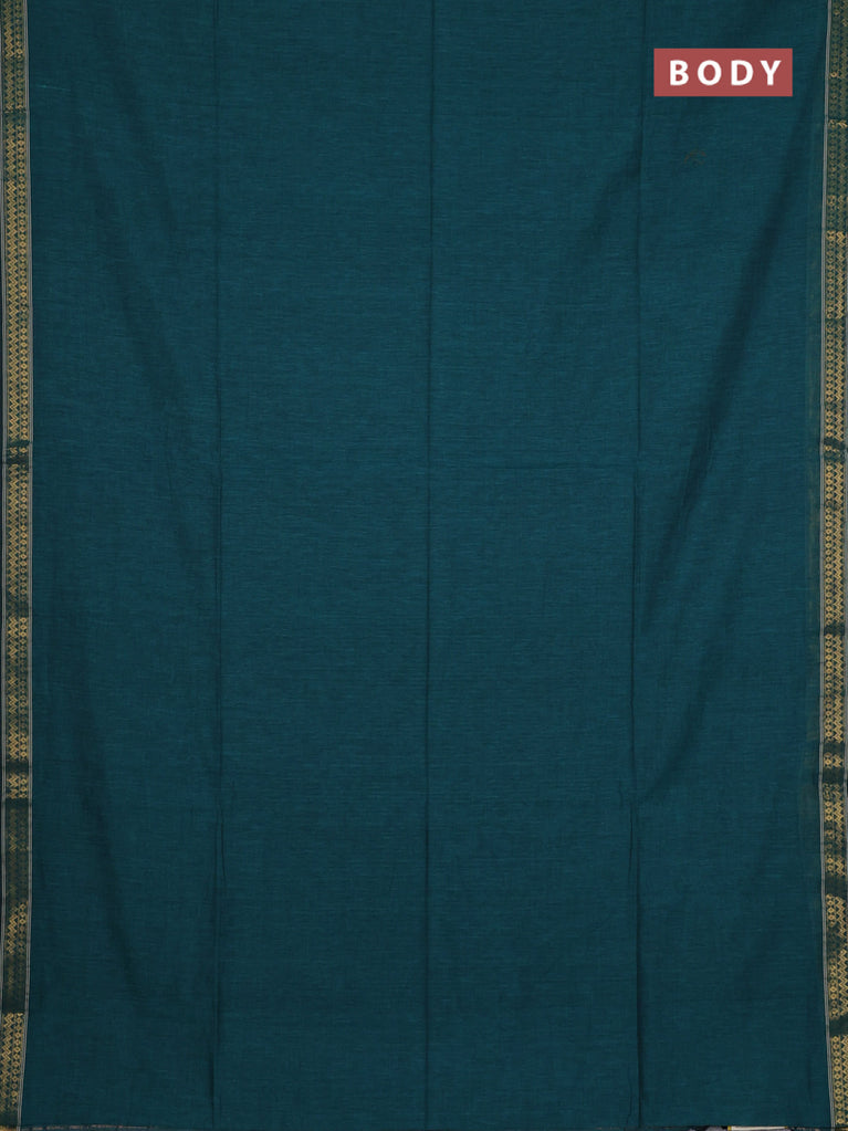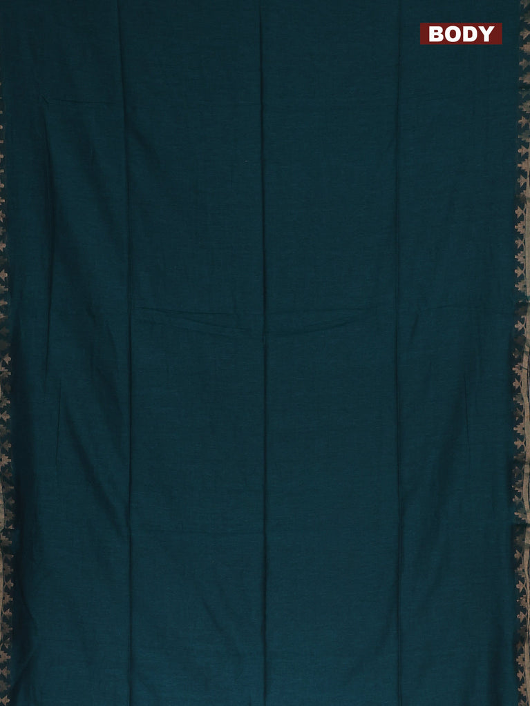 Bengal soft cotton saree teal blue shade with plain body and zari woven piping border