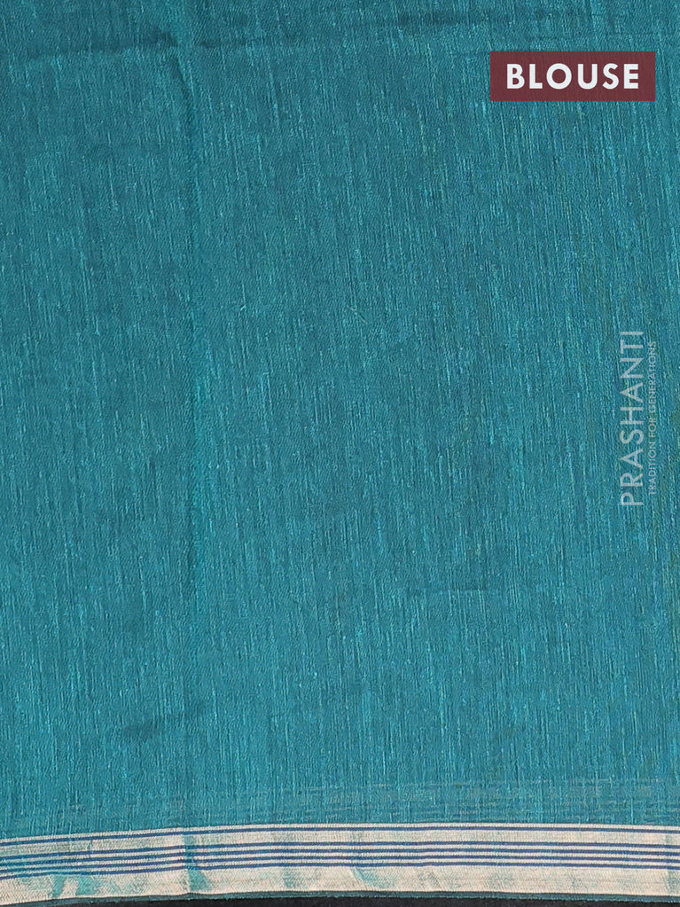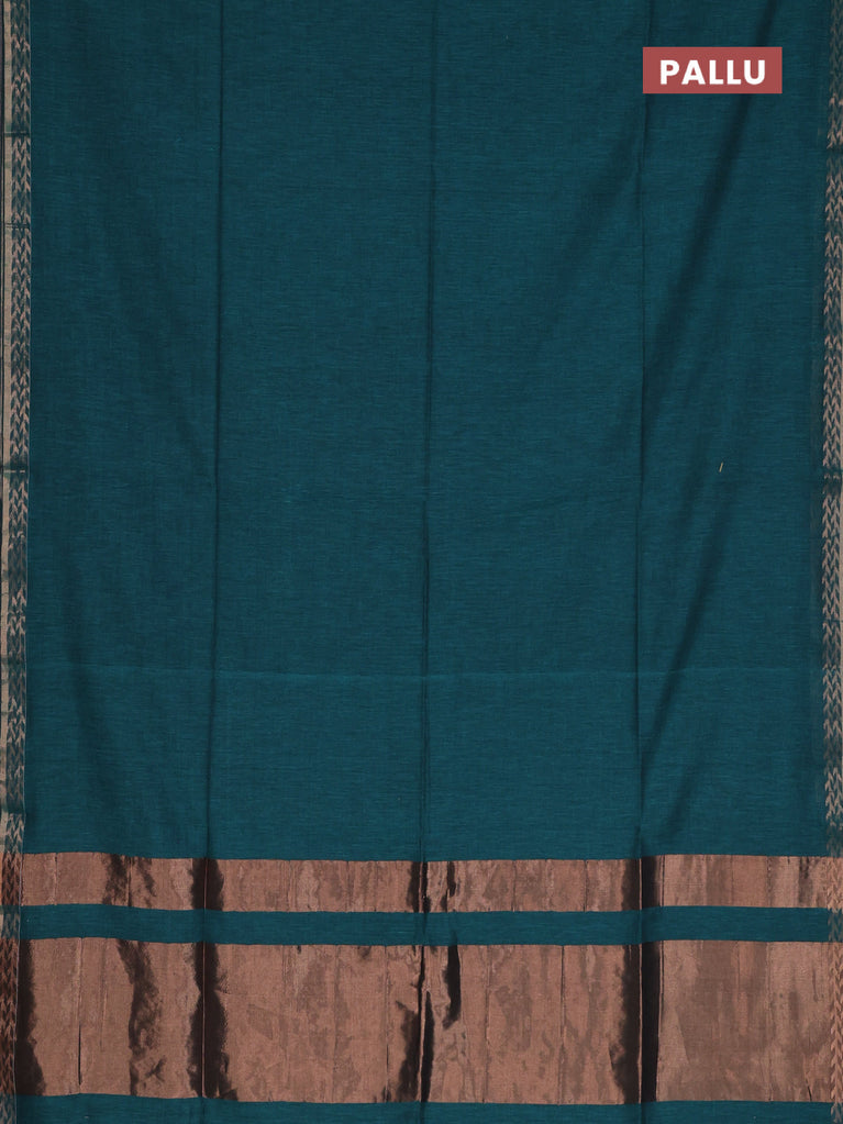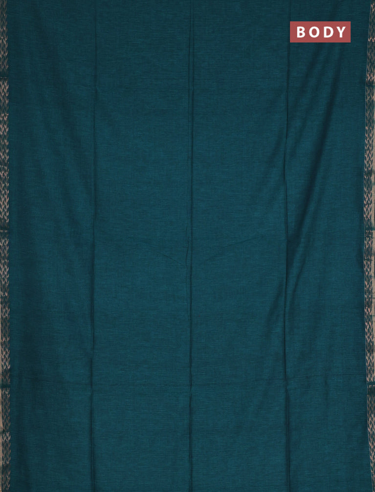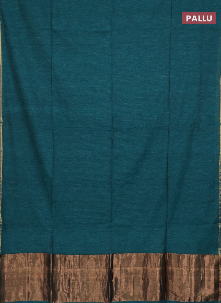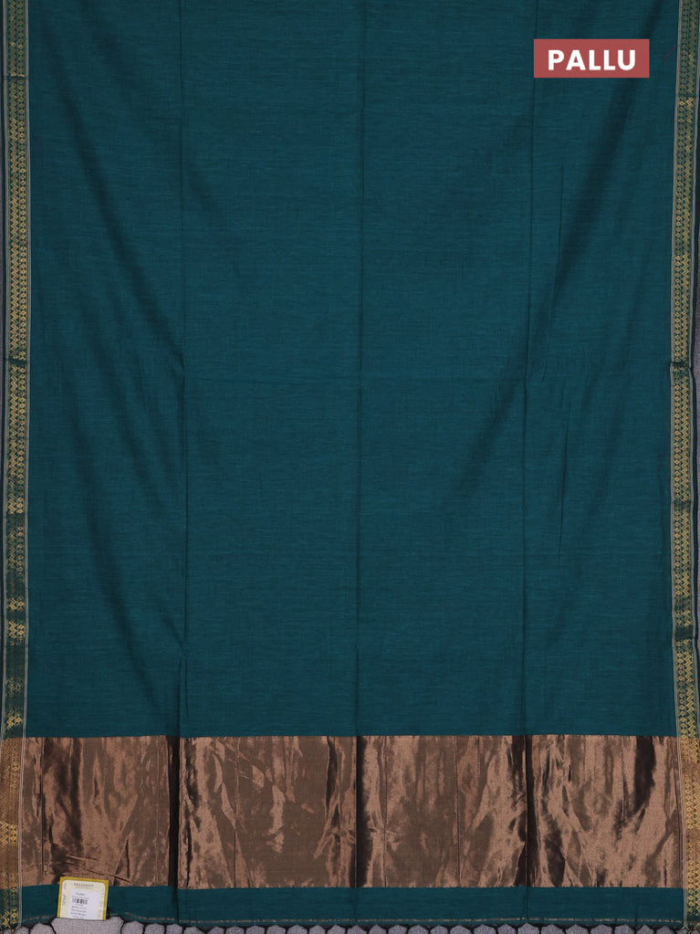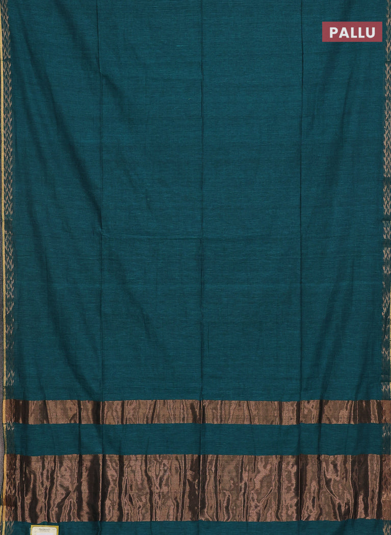 Bengal soft cotton saree teal blue shade with plain body and zari woven piping border