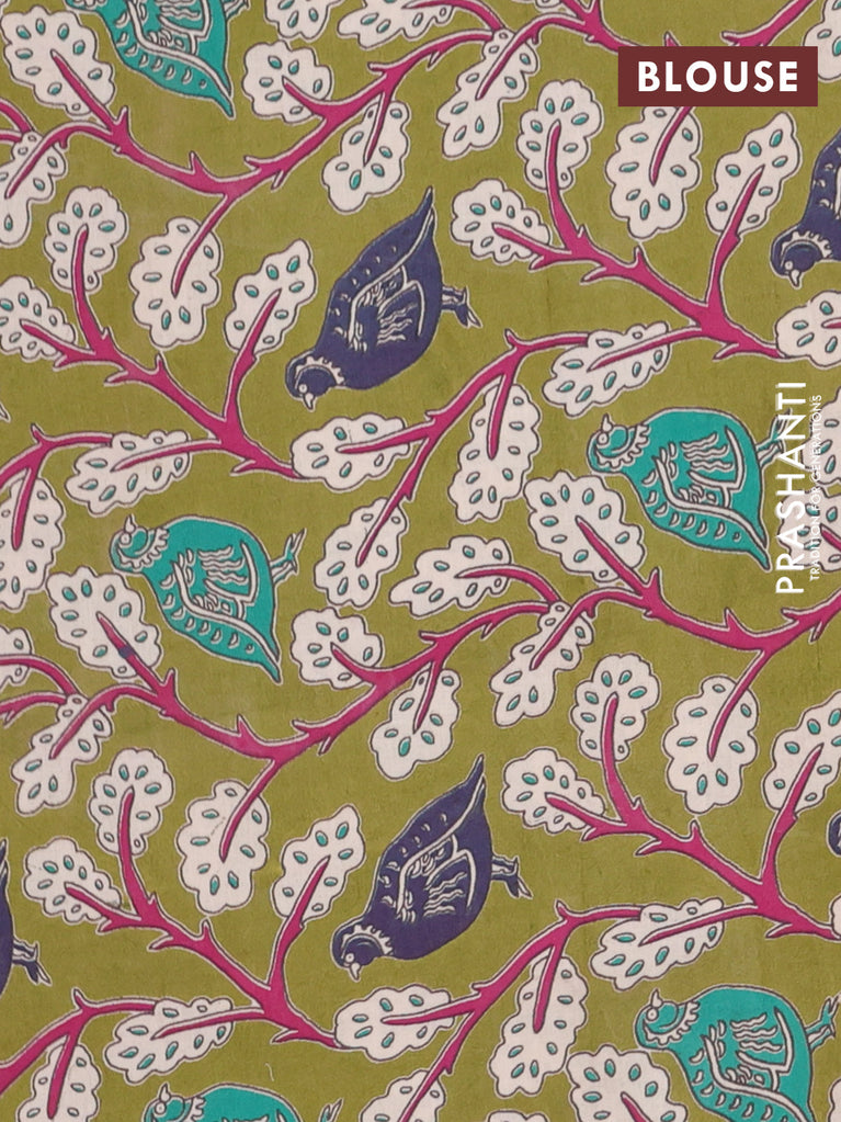 Bengal soft cotton saree sap green with plain body and zari woven border