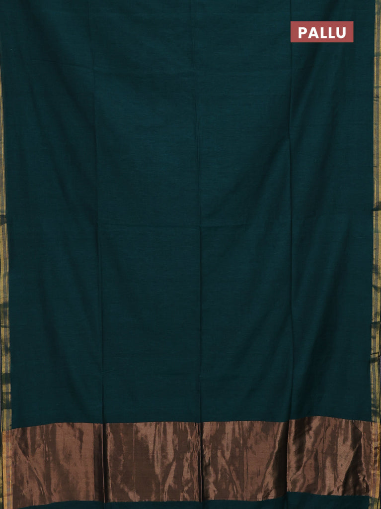 Bengal soft cotton saree teal green and deep maroon with plain body and zari woven border