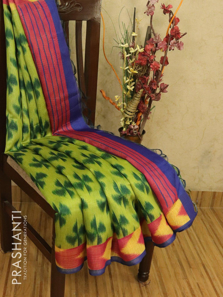 Bhagalpuri saree green and blue with allover ikat prints and simple zari border - TFR5990