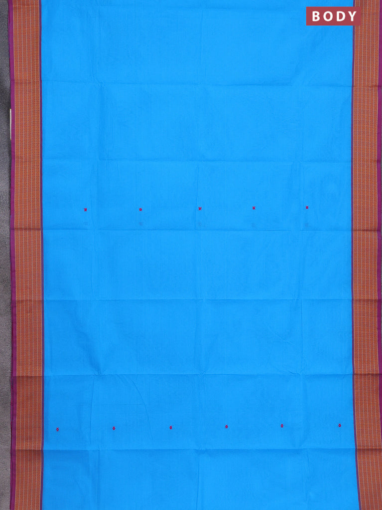 Chettinad cotton saree blue and purple with thread woven buttas and zari woven paisley border