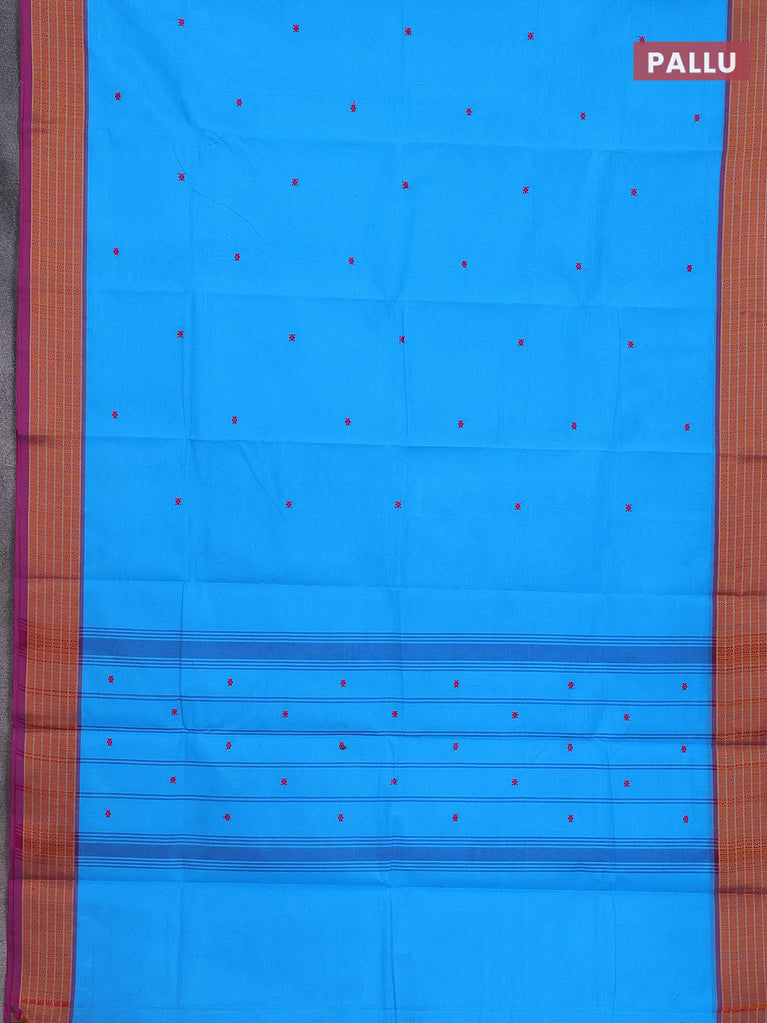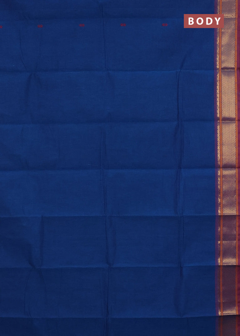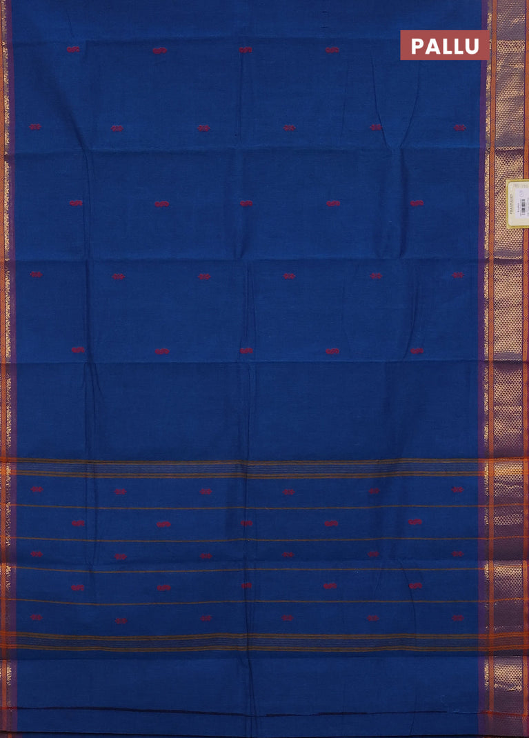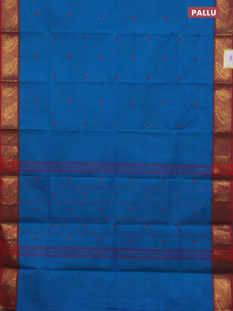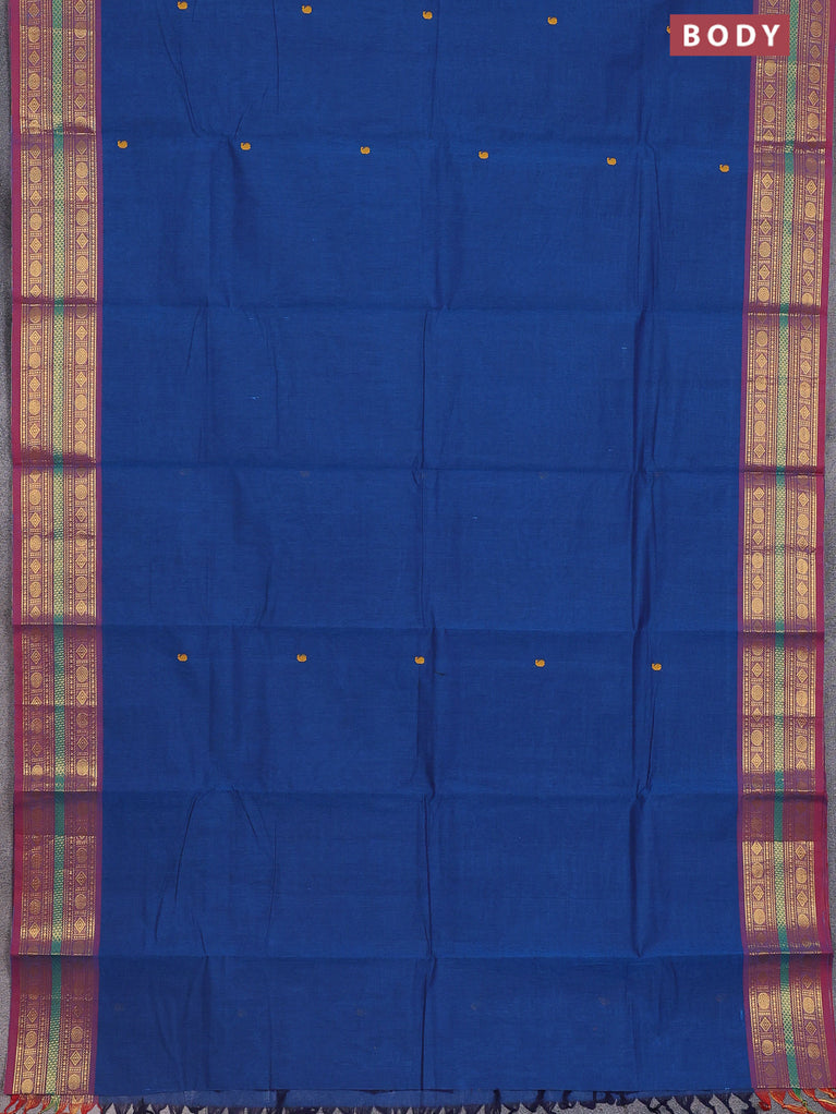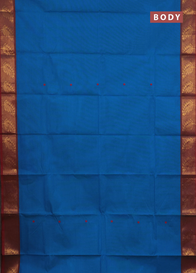 Chettinad cotton saree cs blue and maroon with thread woven buttas and zari woven border