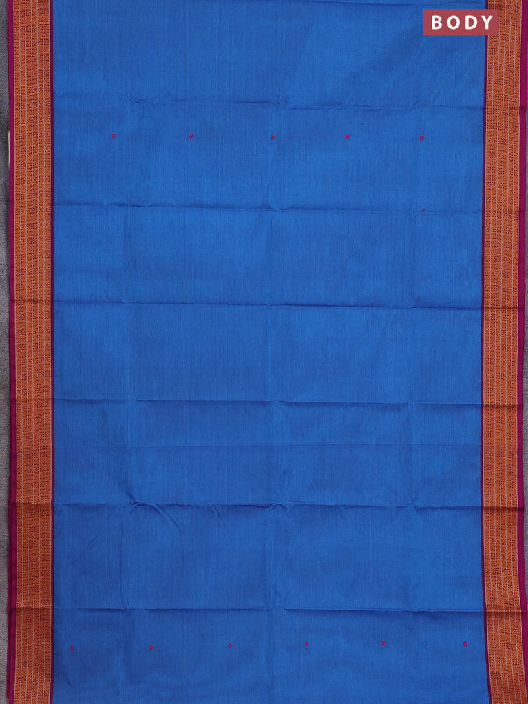 Chettinad cotton saree cs blue and dark pink with thread woven buttas and zari woven border