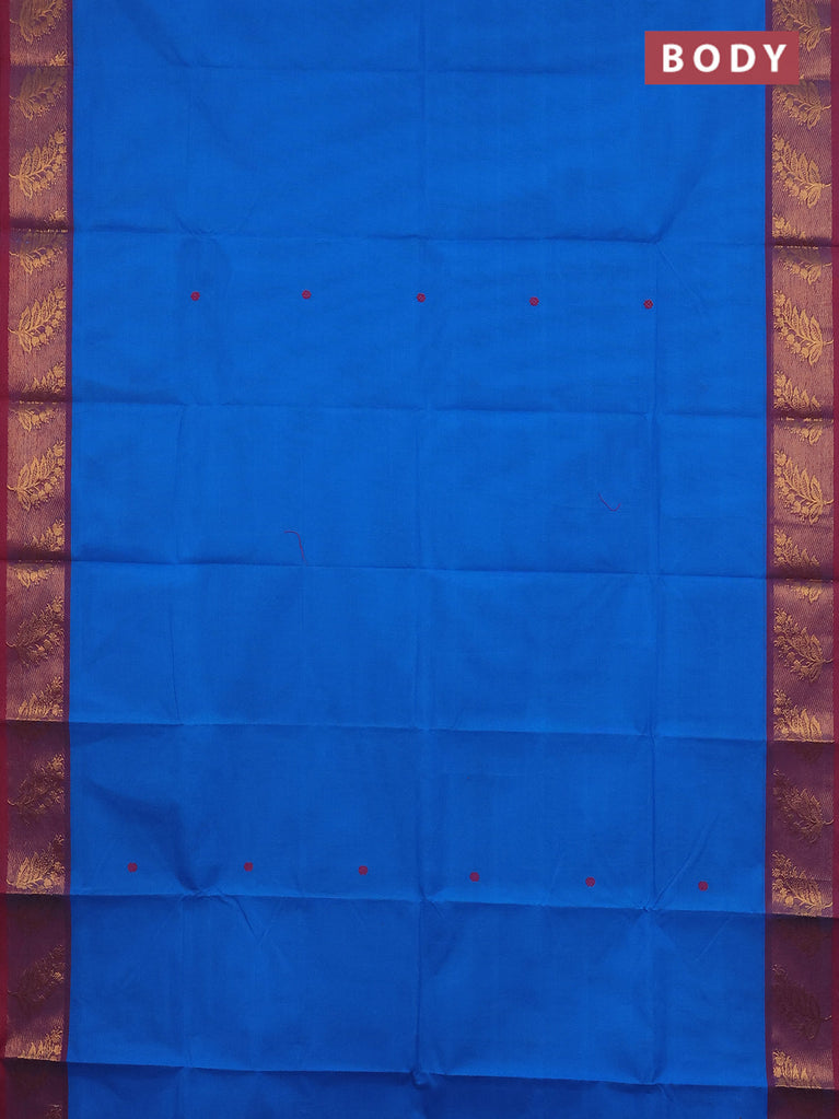 Chettinad cotton saree blue and maroon with thread woven buttas and zari woven border