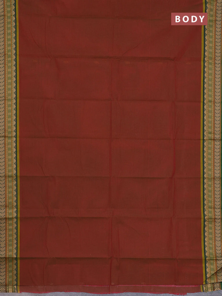 Chettinad cotton saree dual shade of maroon and green with plain body and zari woven border