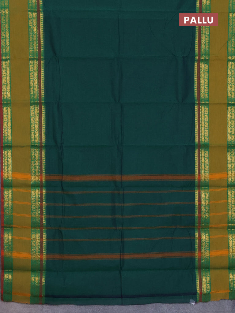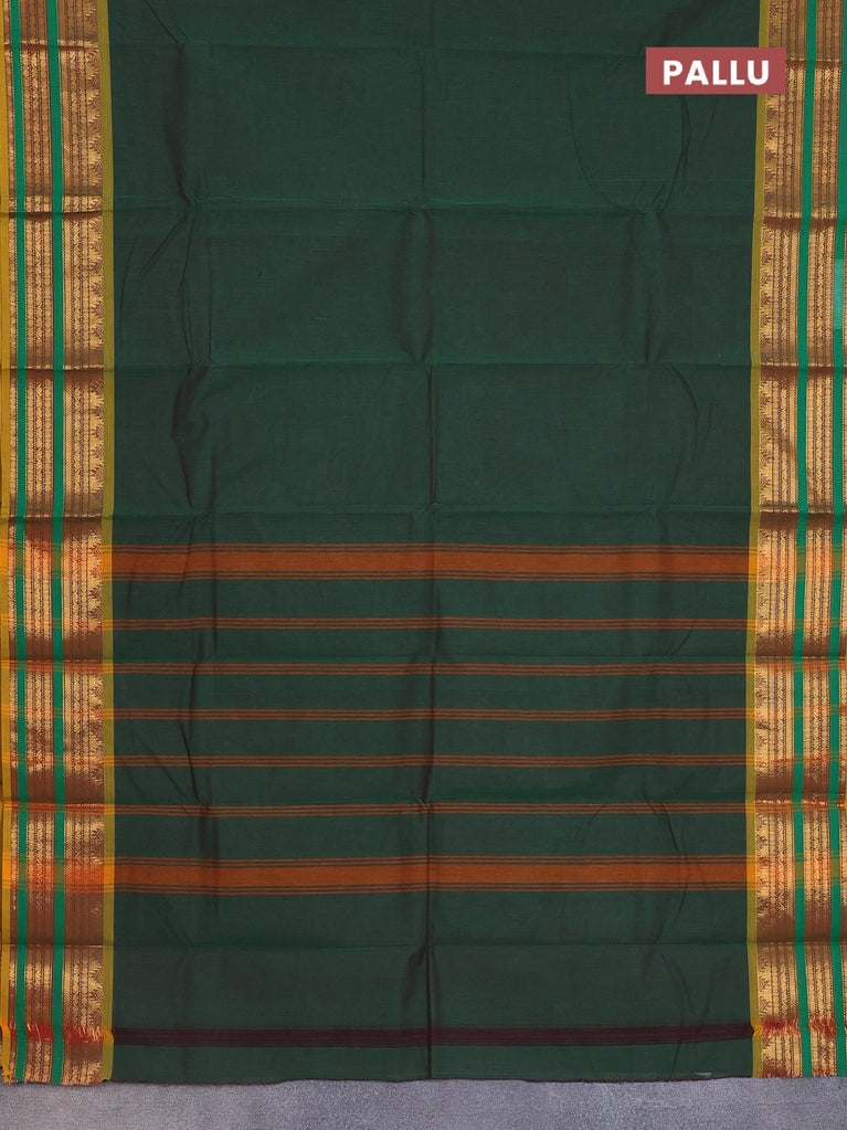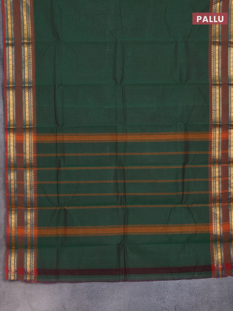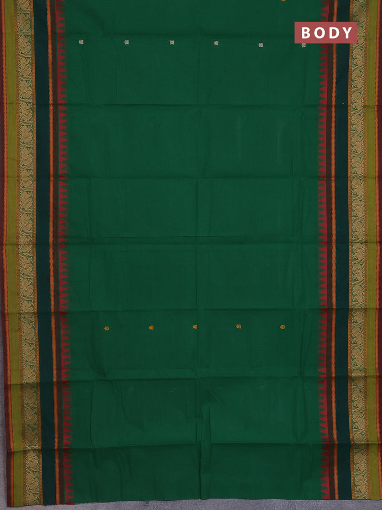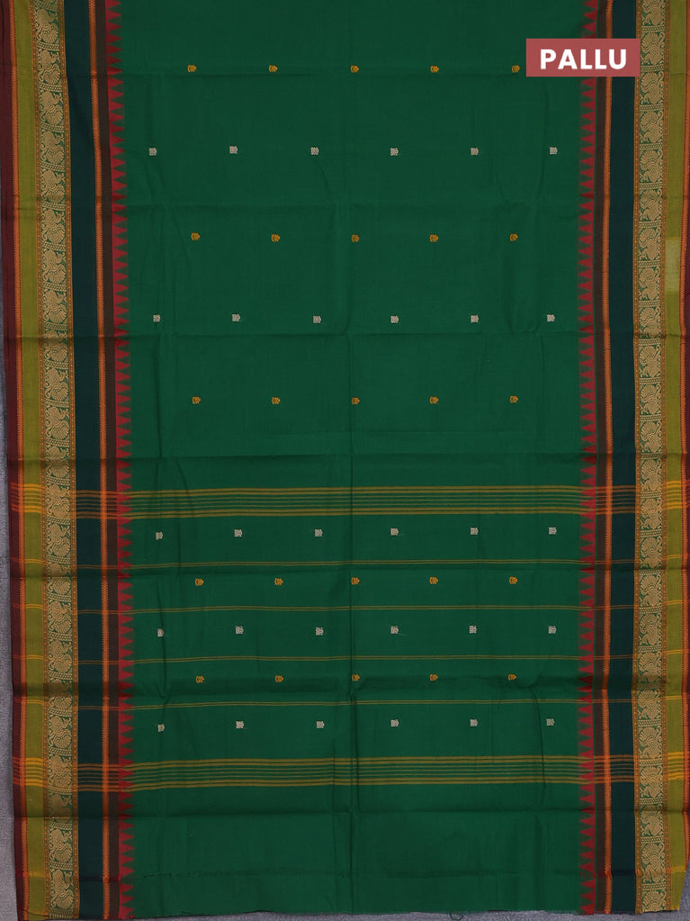 Chettinad cotton saree green and red with thread woven buttas and long zari woven border