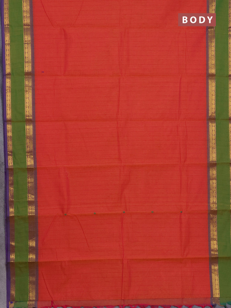 Chettinad cotton saree dual shade of pinkish orange and green with thread woven buttas and thread & zari woven border
