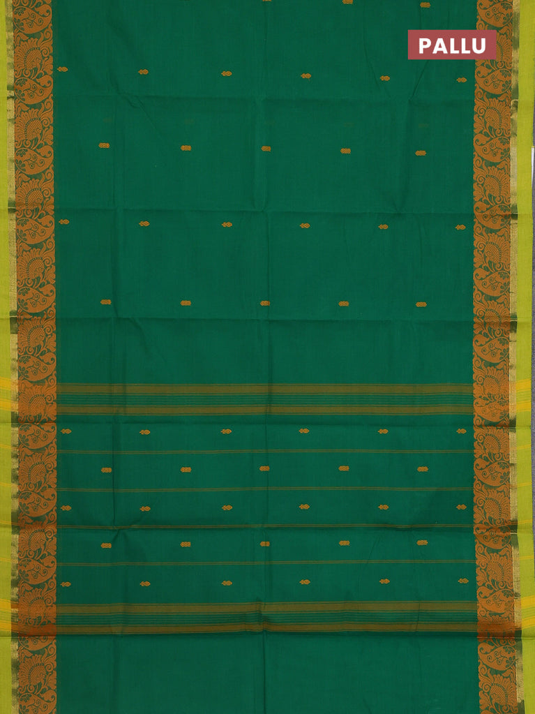 Chettinad cotton saree green and mustard with thread woven buttas and rattapet zari woven border