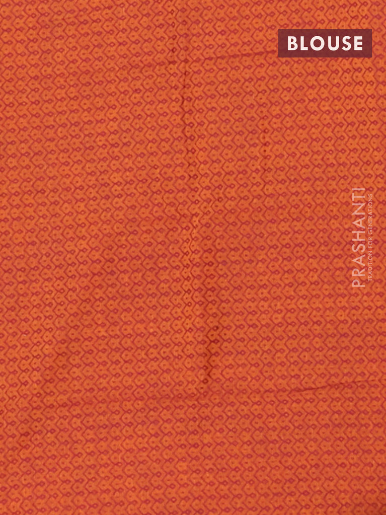 Chettinad cotton saree dual shade of orange and green with allover checked pattern and rattapet zari woven border
