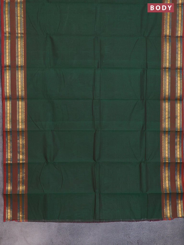 Chettinad cotton saree green and maroon with thread woven buttas and temple disign zari woven border